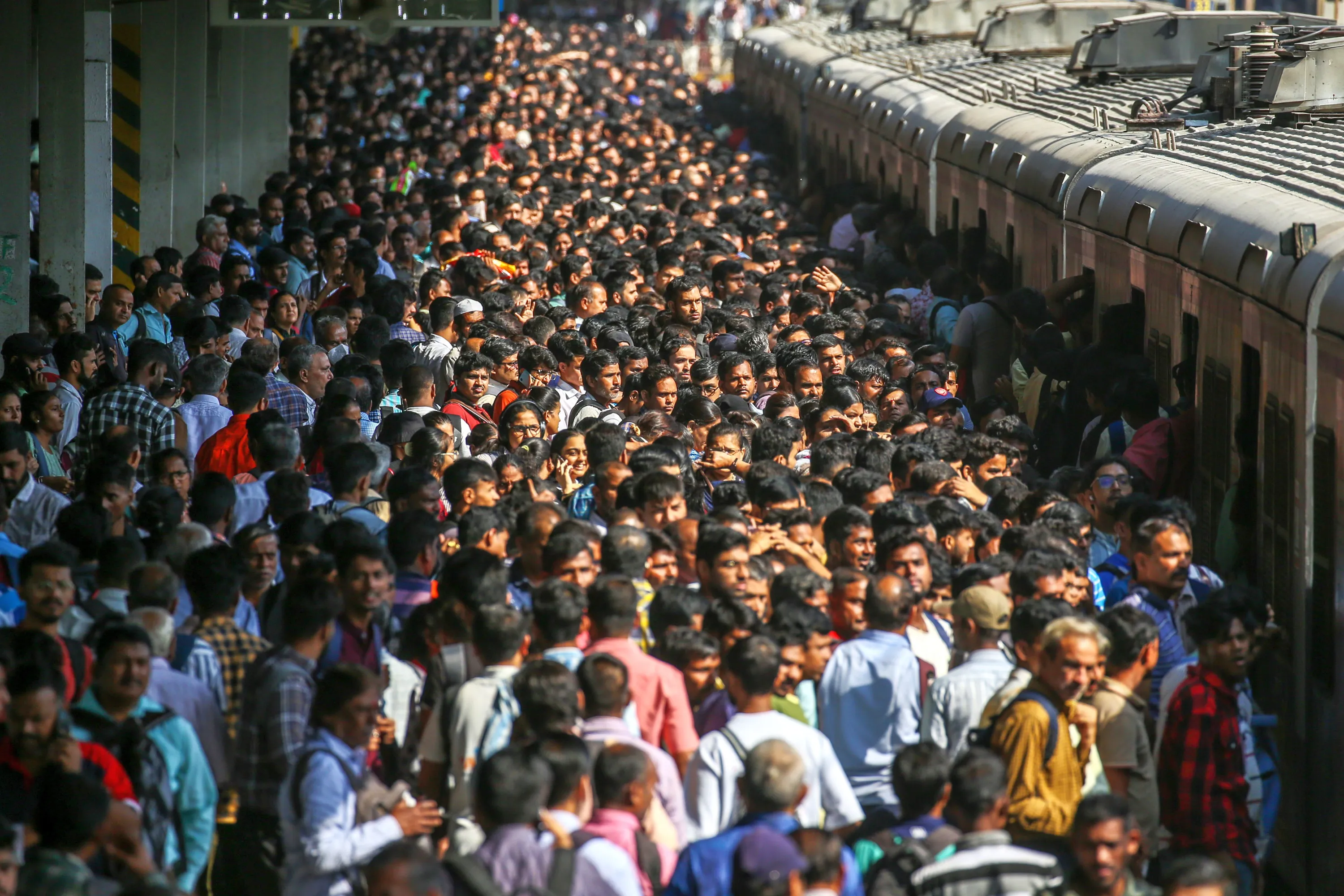 Indian commuters wait for the local train at Borivali railway station in Mumbai, India on October 27, 2023. The Western Railways canceled over 2300 suburban train services (approx. 250 trains every day) from 27 October until 05 November to complete the construction of the sixth line between Goregaon to Bandra terminus route. (Photo by Divyakant Solanki/EPA)