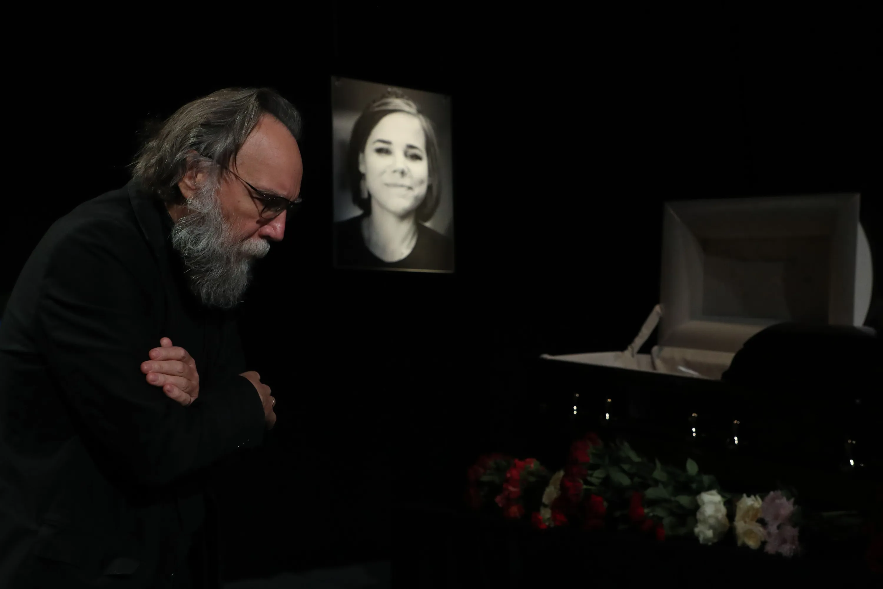 Russian political philosopher Alexander Dugin, leader of the International Eurasian Movement, attends a mourning ceremony for his daughter, Russian journalist and political scientist Darya Dugina (Platonova), at the Ostankino Television Technical Center in Moscow, Russia, 23 August 2022. Dugina, 29, died on 20 August when the car she was driving blew up on a highway near Moscow. (Photo by Maxim Shipenkov/EPA/EFE/Rex Features/Shutterstock)