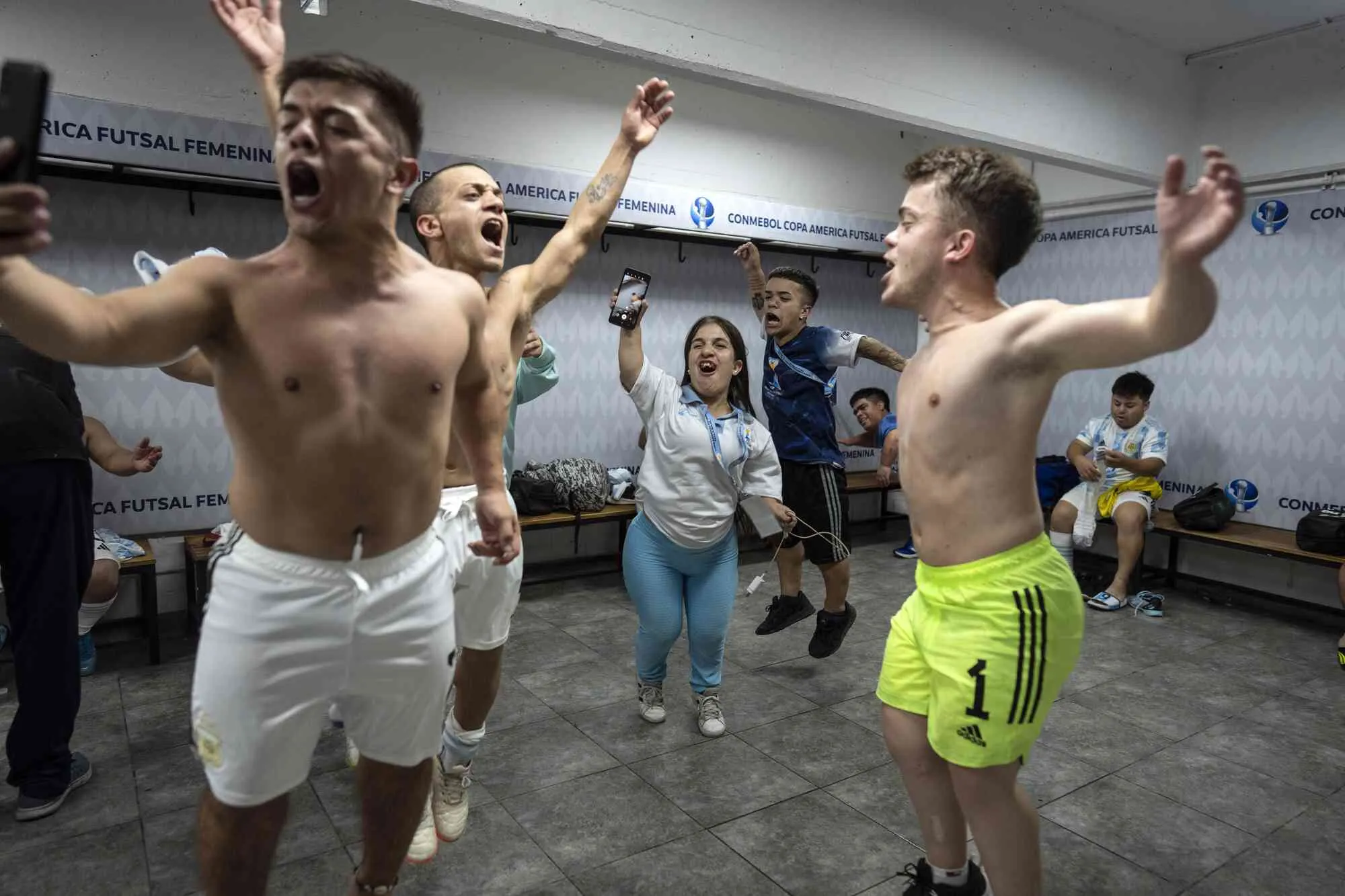 Team Argentina celebrates defeating Peru at the end of their Little People World Cup soccer match, in Buenos Aires, Argentina, Thursday, November 9, 2023. (Photo by Rodrigo Abd/AP Photo)