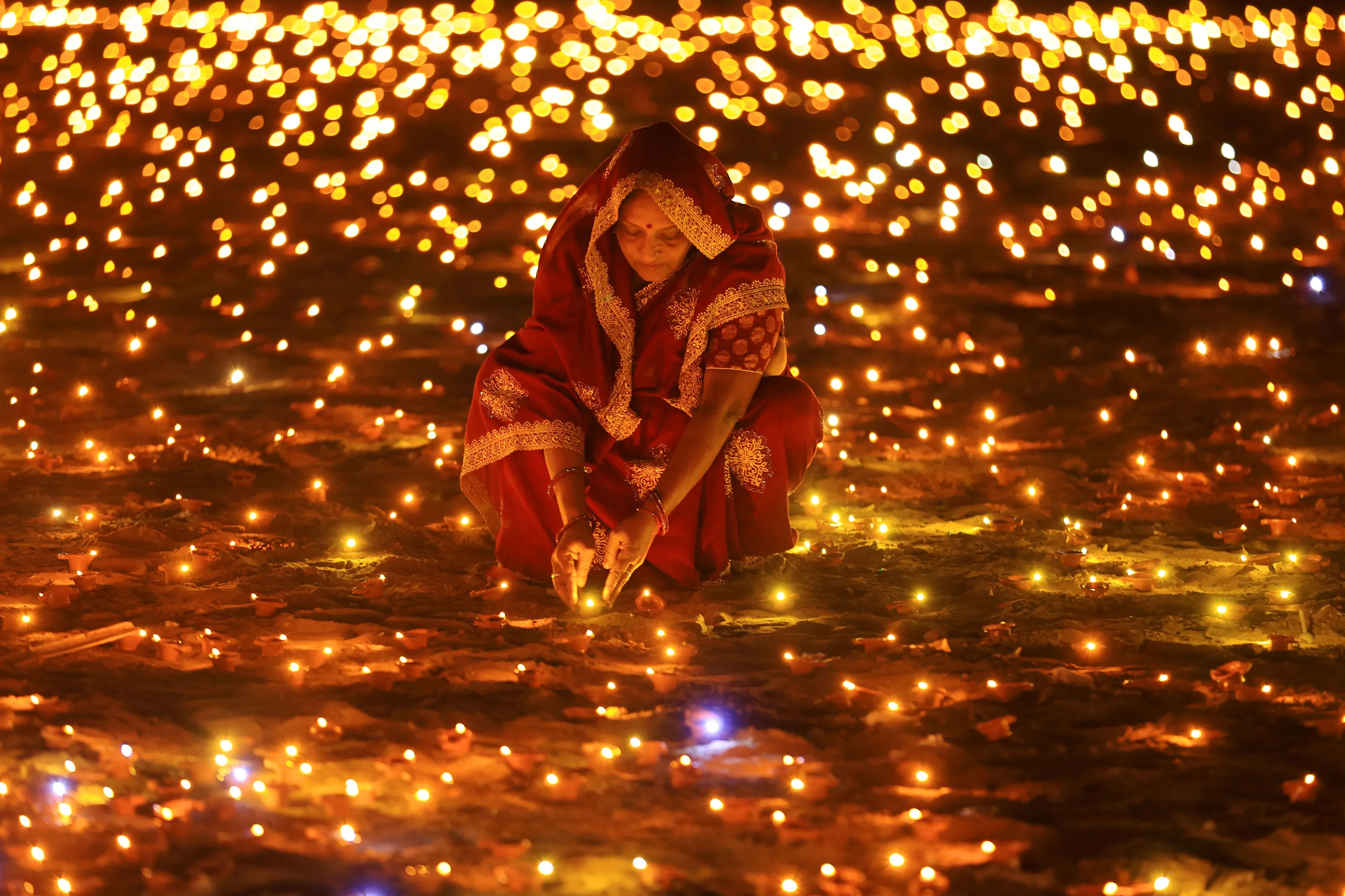 A woman during the “Deepotsav” celebration on the occasion of Diwali festival, in Jaipur, Rajasthan, India, Saturday night, November 11, 2023. (Photo by Vishal Bhatnagar/NurPhoto/Rex Features/Shutterstock)