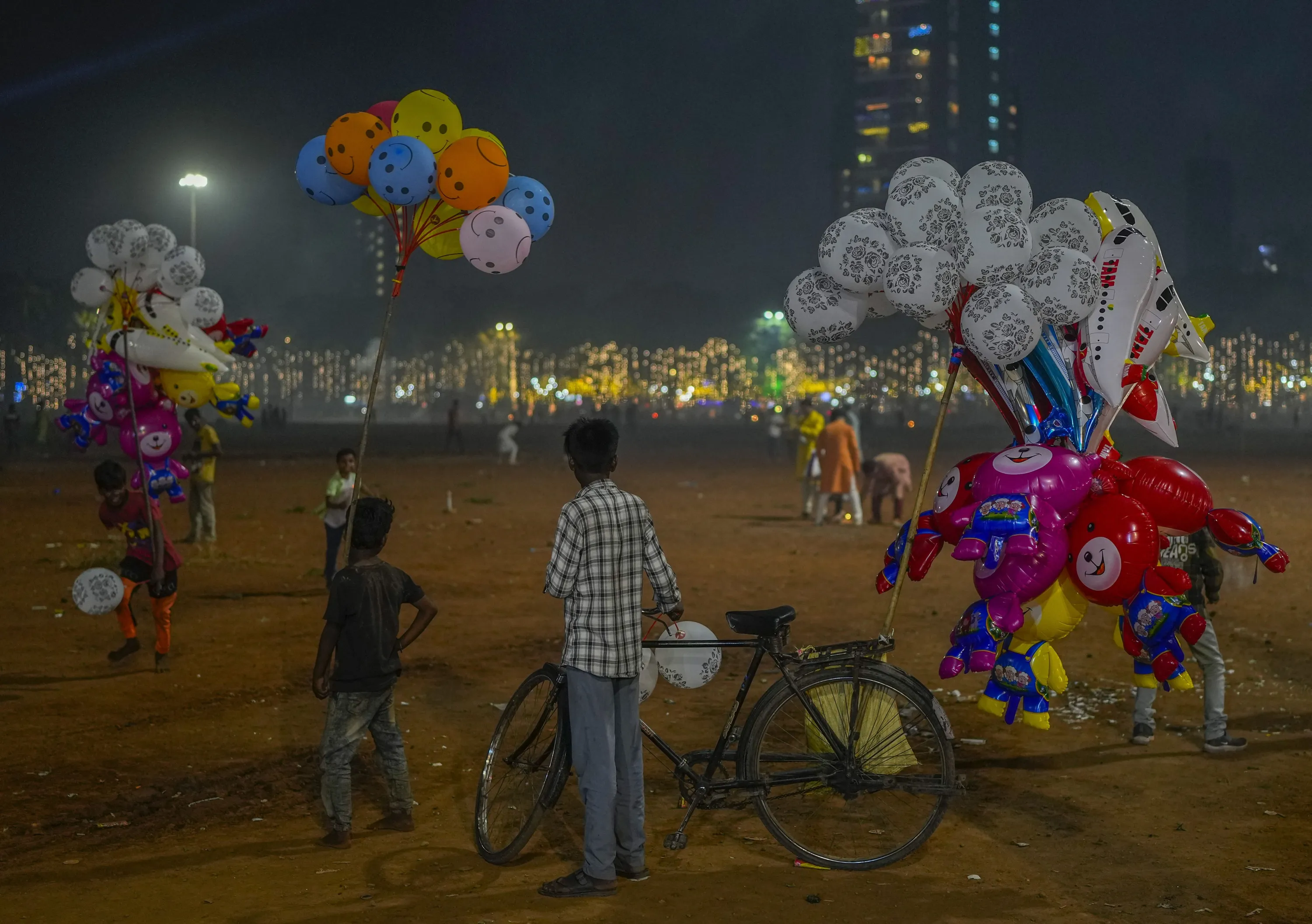 A group of balloon sellers wait for customers at the park during Diwali, the Hindu festival of lights, in Mumbai, India, Sunday, November 12, 2023. (Photo by Rafiq Maqbool/AP Photo)