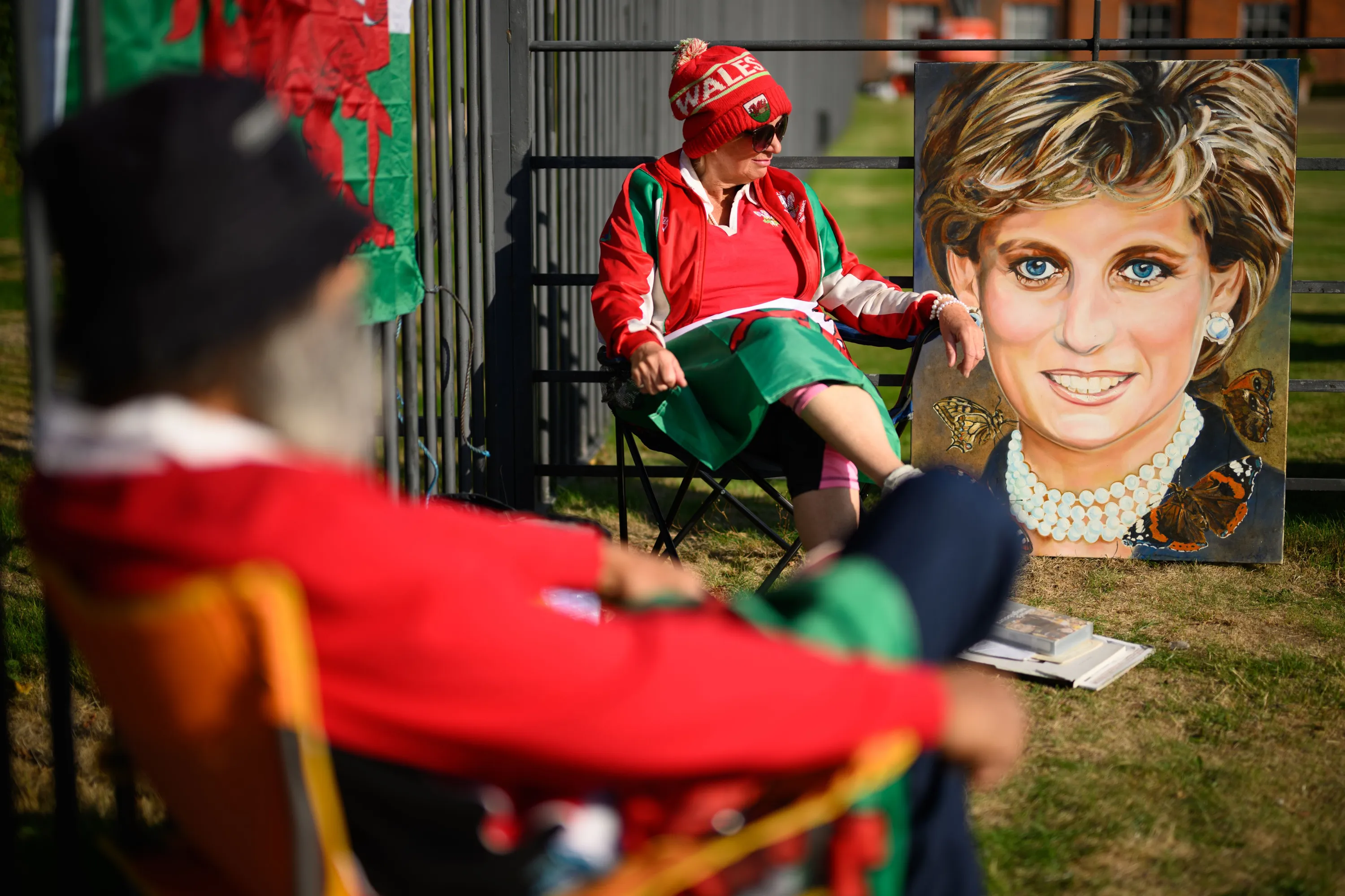 A painting of Princess Diana is seen as fans of the Royal Family gather outside Kensington Palace to show their support on the 25th anniversary of the death of Diana, Princess of Wales, on August 31, 2022 in London, England. Diana, Princess of Wales died on the night of August 31, 1997, when the car she was travelling in collided with the Pont de l'Alma tunnel in Paris, France. She was travelling with her partner Dodi Fayed who also died, as did the driver of the Mercedes Henri Paul. (Photo by Leon Neal/Getty Images)