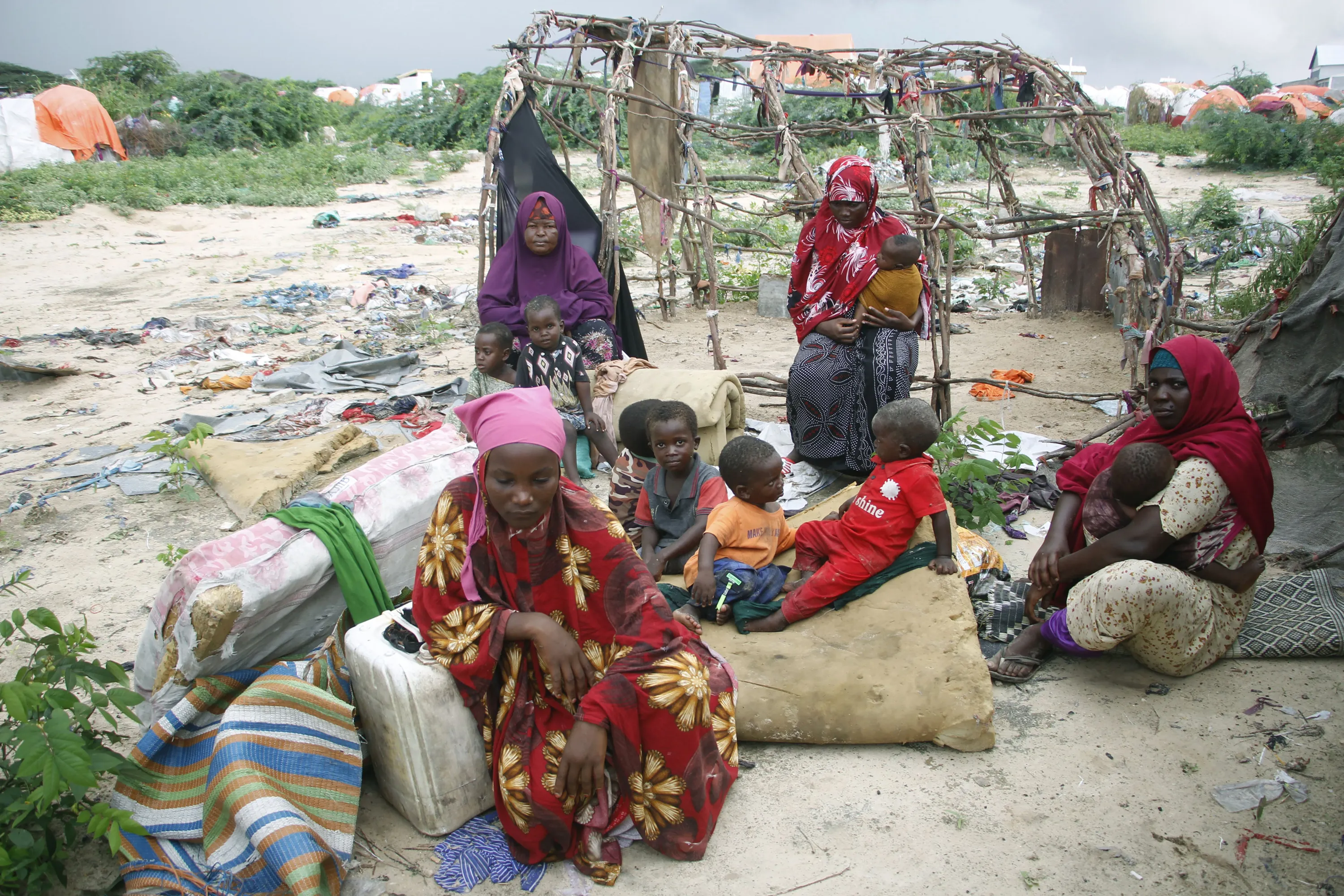 Somali displaced people sit after heavy floods hit their makeshift shelter, in Mogadishu, Somalia, Monday, November 13, 2023. Somali authorities say floods caused by torrential rainfall have killed at least 30 people in various parts of the country. (Photo by Farah Abdi Warsameh/AP Photo)
