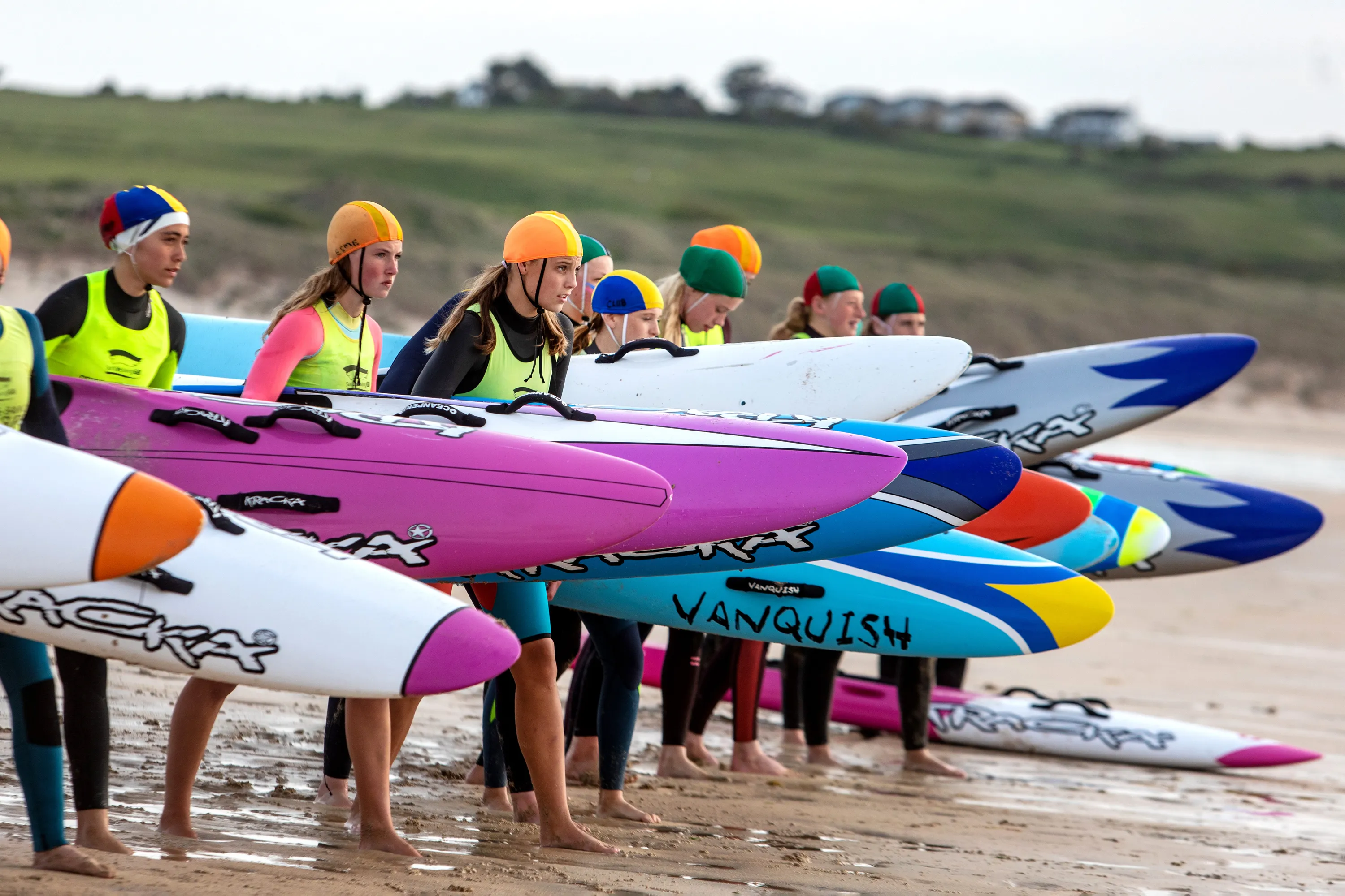 Hayle Surf Live Saving Club competition at Hayle in Cornwall on May 17, 2023. Competitors swam, paddled a rescue board and paddled a long ski around a course marked out by buoys. (Photo by Mike Newman/Picture Exclusive)