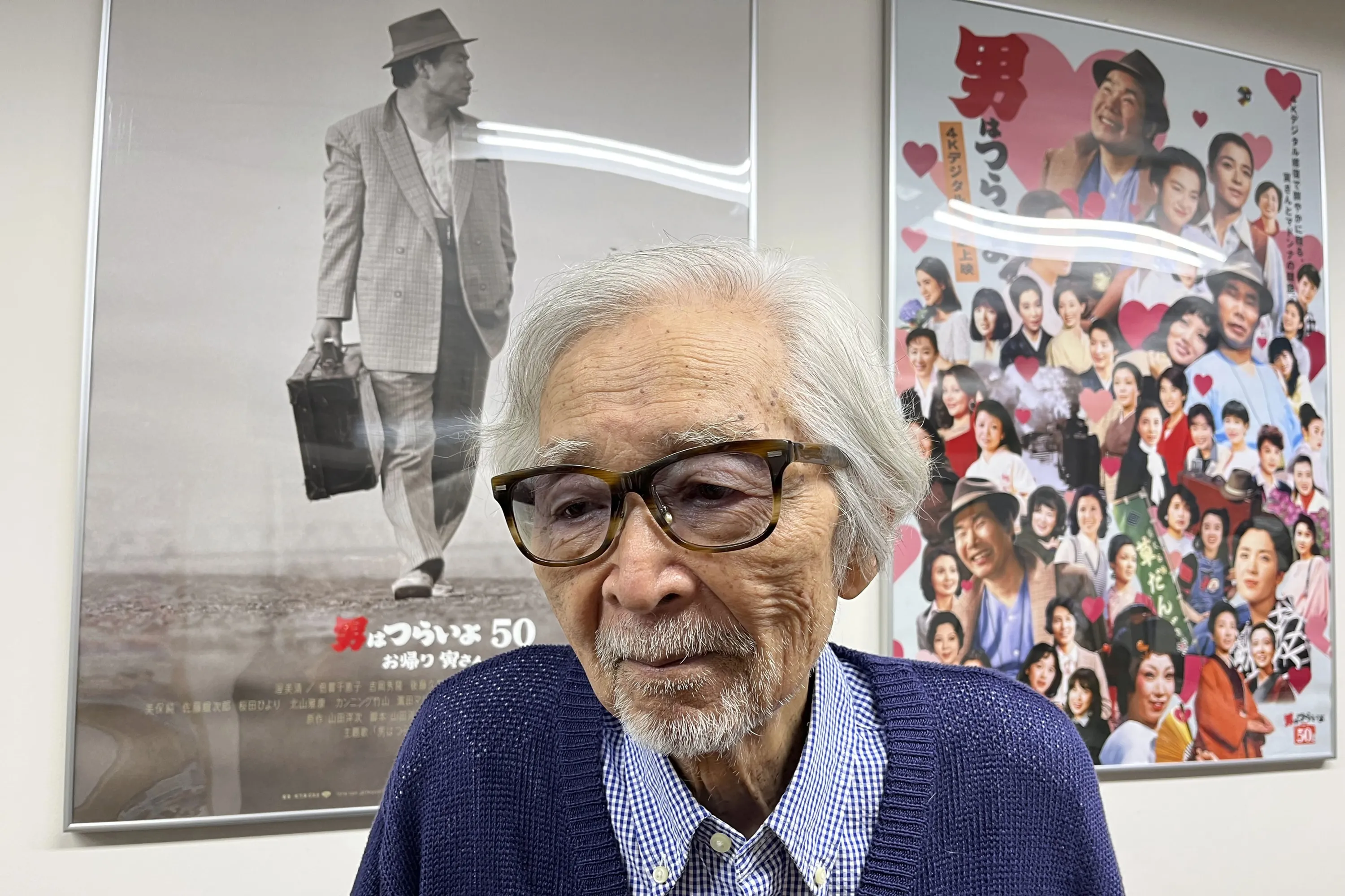 Japanese director Yoji Yamada, who has 90 films to his credit, talks to The Associated Press at a Shochiku office in Tokyo, Wednesday, October 4, 2023. A theater piece he has scripted and directed, based on a storyteller’s classic, is being performed at the Kabukiza in Tokyo through the end of this month. Yamada, 92, says all his works deal with the question of what it truly means to be human. (Photo by Yuri Kageyama/AP Photo)
