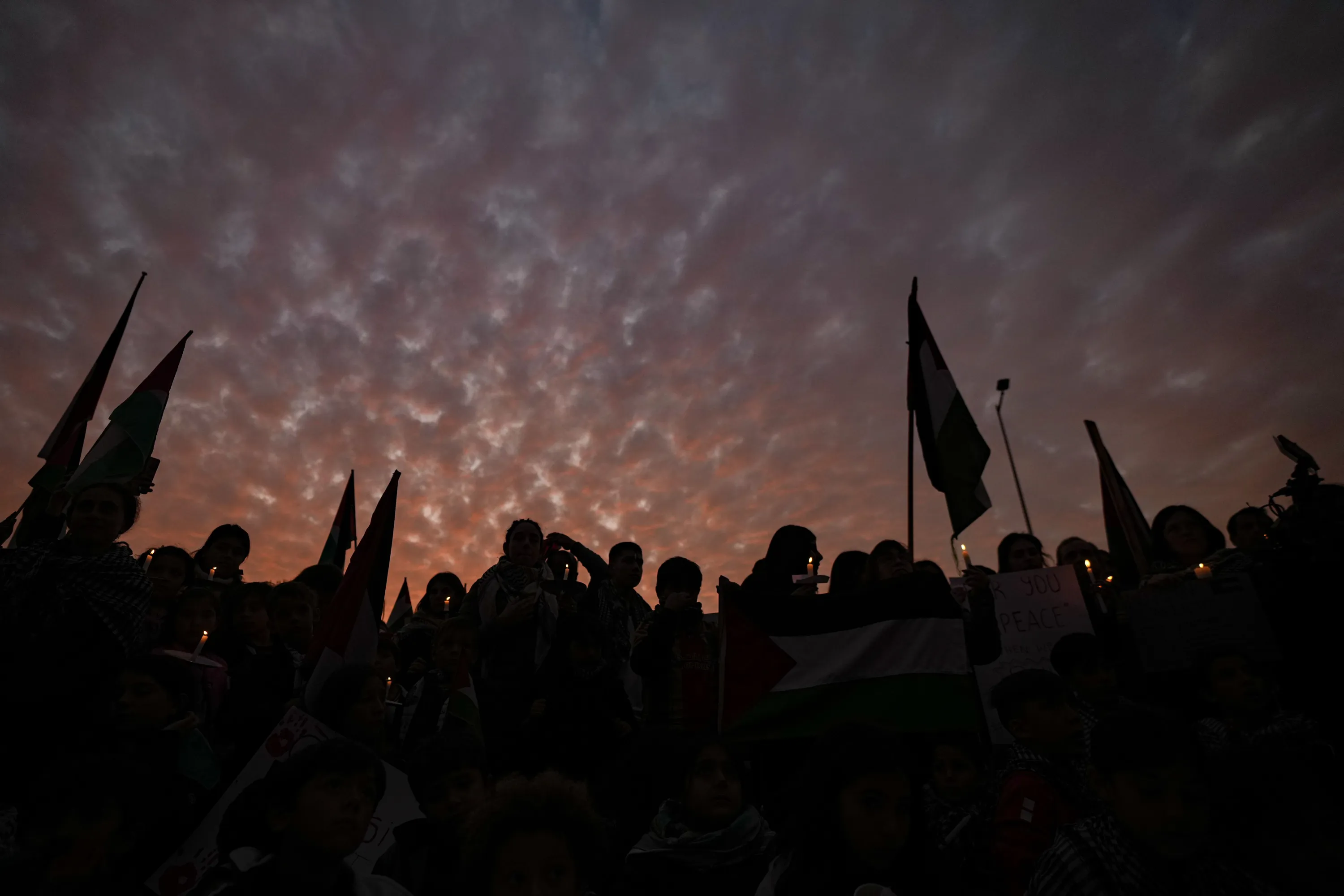 Members of the Palestinian community in Chile attend a demonstration in support of the Palestinian people, in front of the UN building in Santiago, Chile, Tuesday, October 10, 2023. (Photo by Esteban Felix/AP Photo)