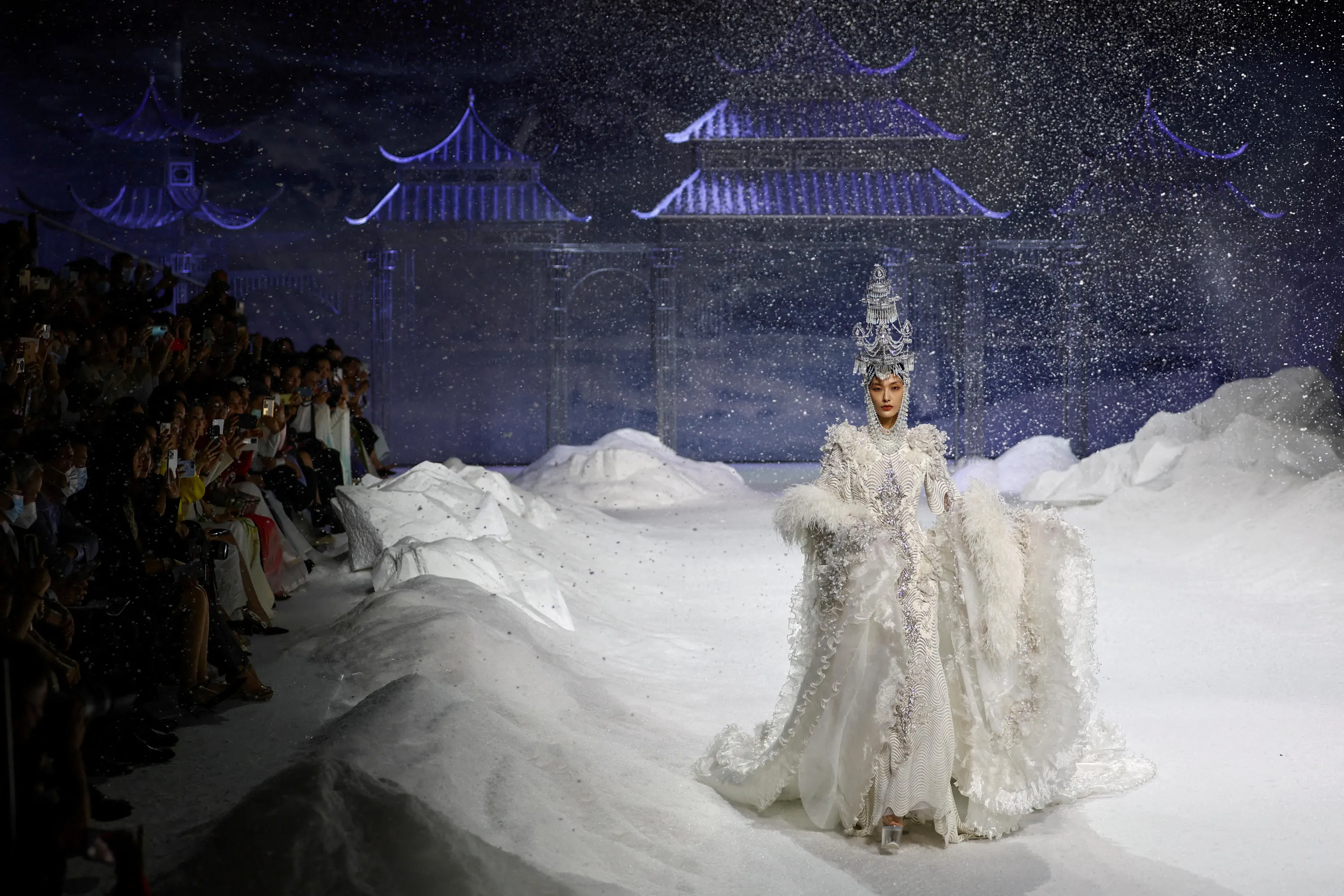 A model presents a creation at the Heaven Gaia Spring/Summer 2023 collection show by Xiong Ying, during China Fashion Week in Beijing, China on September 4, 2022. (Photo by Tingshu Wang/Reuters)
