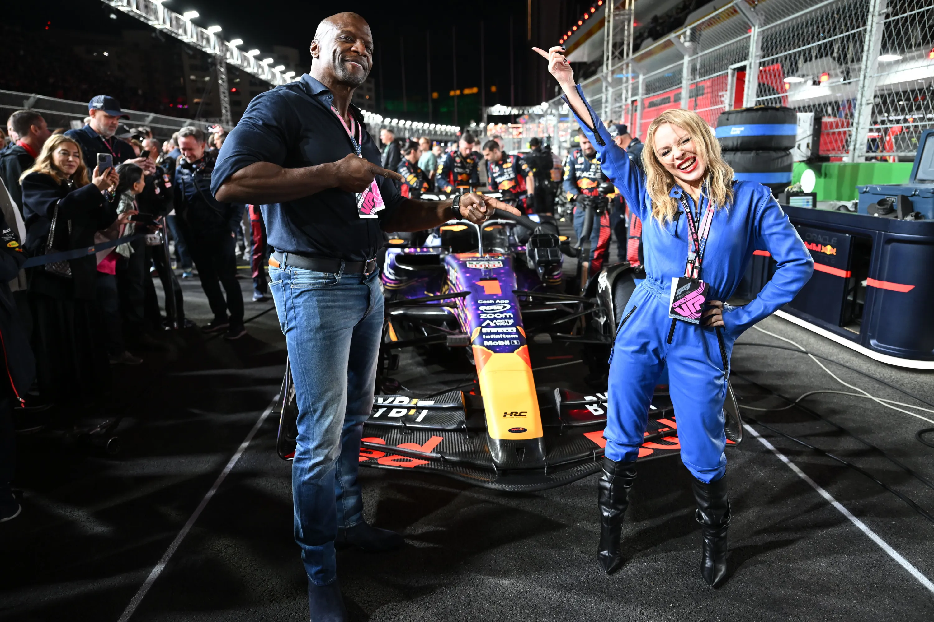 Formula One Las Vegas Grand Prix at Las Vegas Strip Circuit on November 18, 2023 in Las Vegas, United States. Pictured: Kylie Minogue, Terry Crews. (Photo by Mark Sutton/Motorsport Images/Splash News and Pictures)