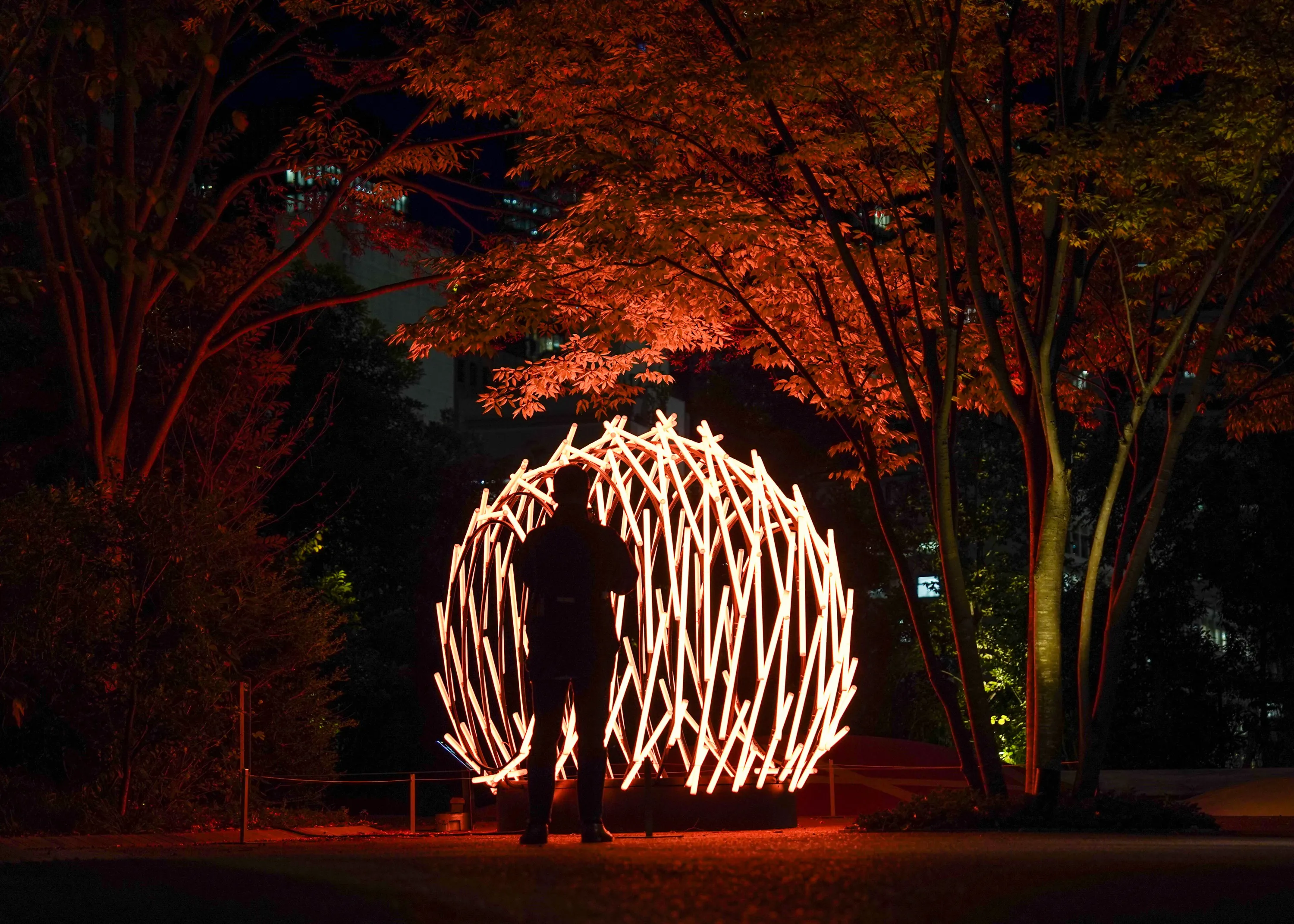 Light art “Nest”, by Vikas Patil & Santosh Gujar, India, is displayed on November 13, 2023 in Tokyo, Japan. (Photo by Christopher Jue/Getty Images)