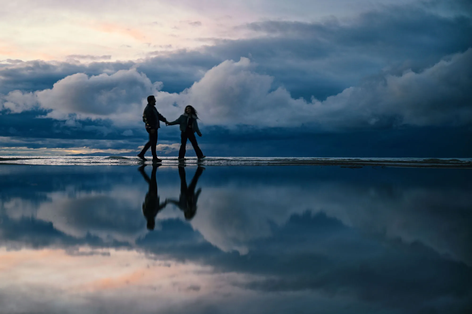 A couple walks near the mountains as the city is covered with snowfall in Van, Turkiye on October 04, 2023. (Photo by Ozkan Bilgin/Anadolu Agency via Getty Images)