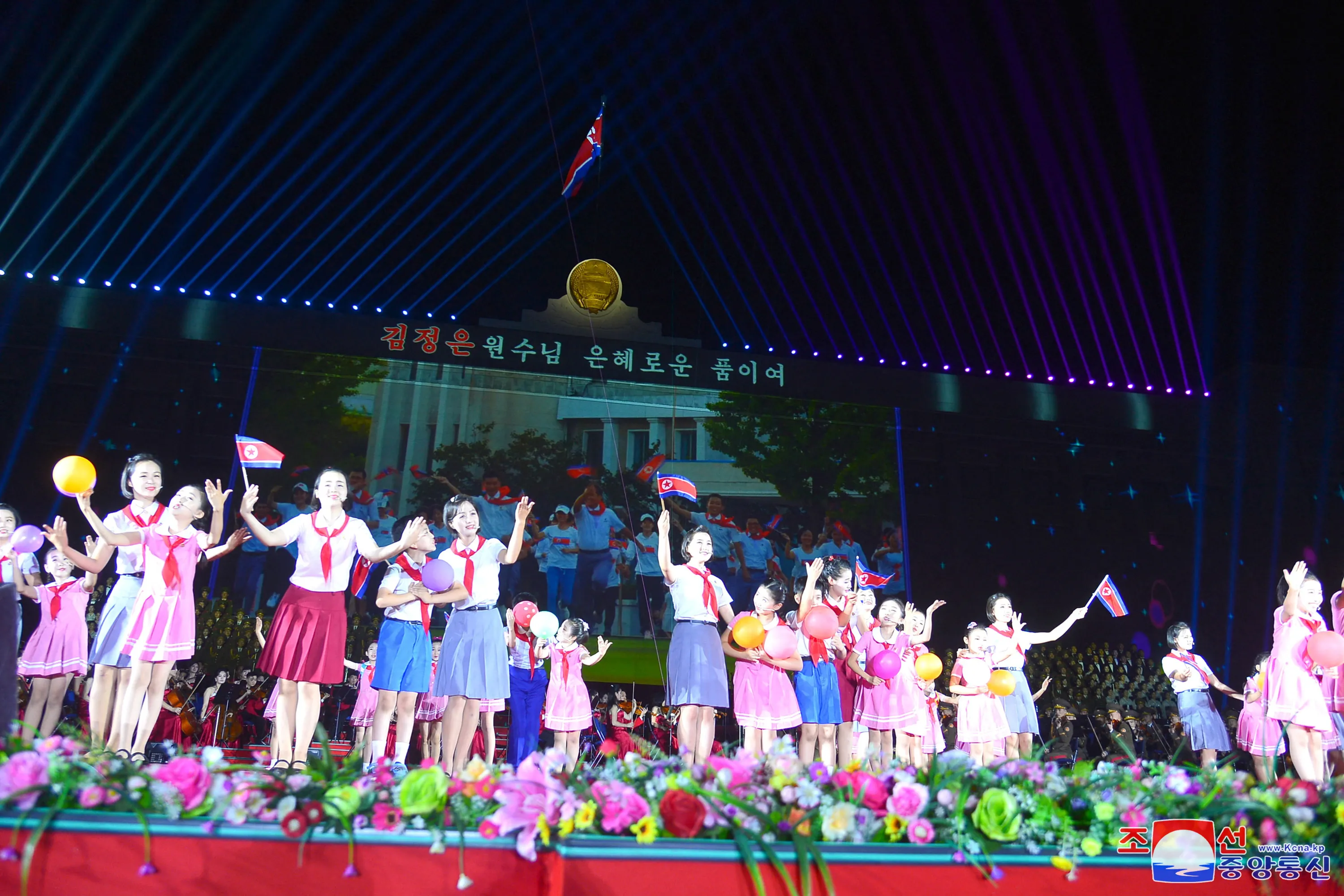 A performance is held during a celebration event marking the 75th anniversary of the founding of the country, at Mansudae Assembly Hall, in Pyongyang, North Korea, in this picture released on September 10, 2023. (Photo by KCNA via Reuters)
