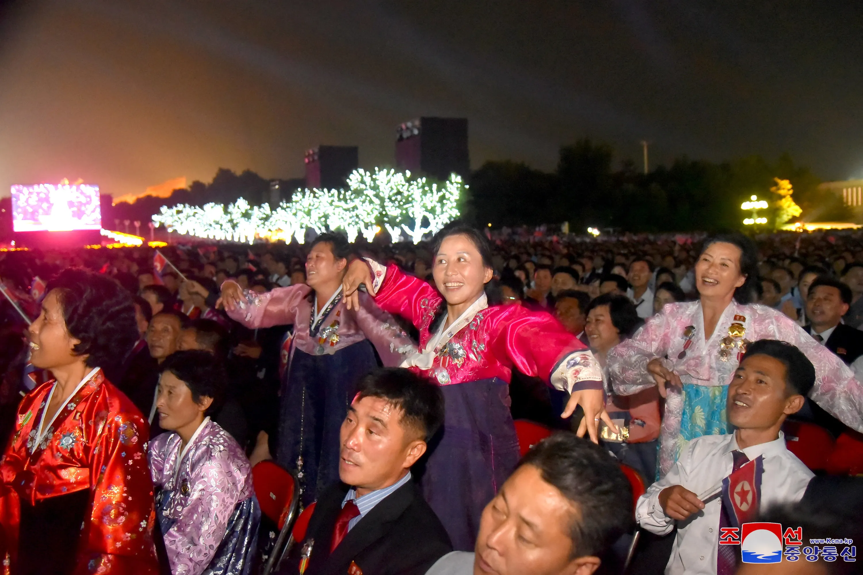 A performance is held during a celebration event marking the 75th anniversary of the founding of the country, at Mansudae Assembly Hall, in Pyongyang, North Korea, in this picture released on September 10, 2023. (Photo by KCNA via Reuters)