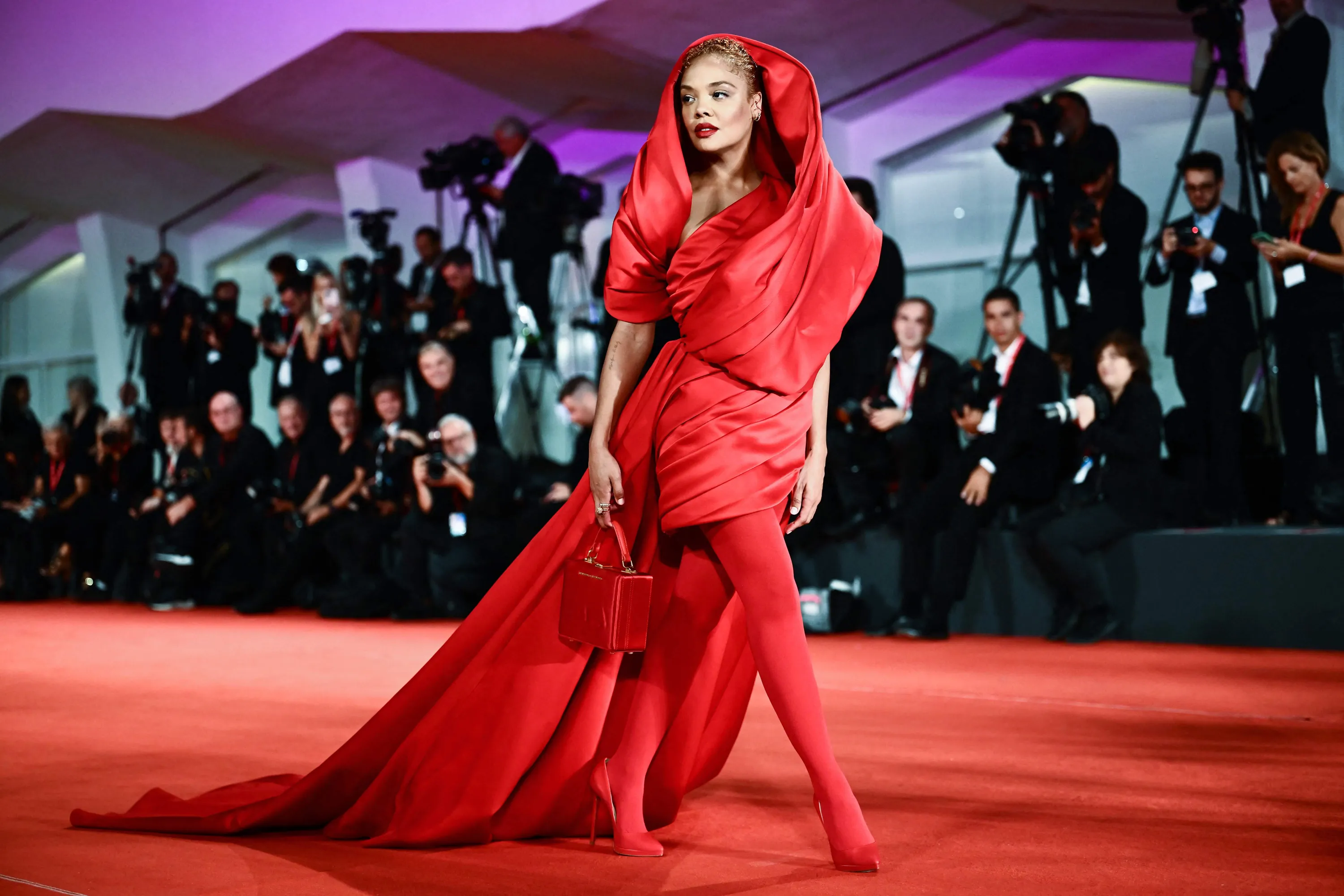 US actress Tessa Thompson arrives on September 1, 2022 for the screening of the film “Bardo, False Chronicle of a Handful of Truths” (Bardo, Falsa Cronica de Unas Cuantas Verdades) presented in the Venezia 79 competition during the 79th Venice International Film Festival at Lido di Venezia in Venice, Italy. (Photo by Marco Bertorello/AFP Photo)