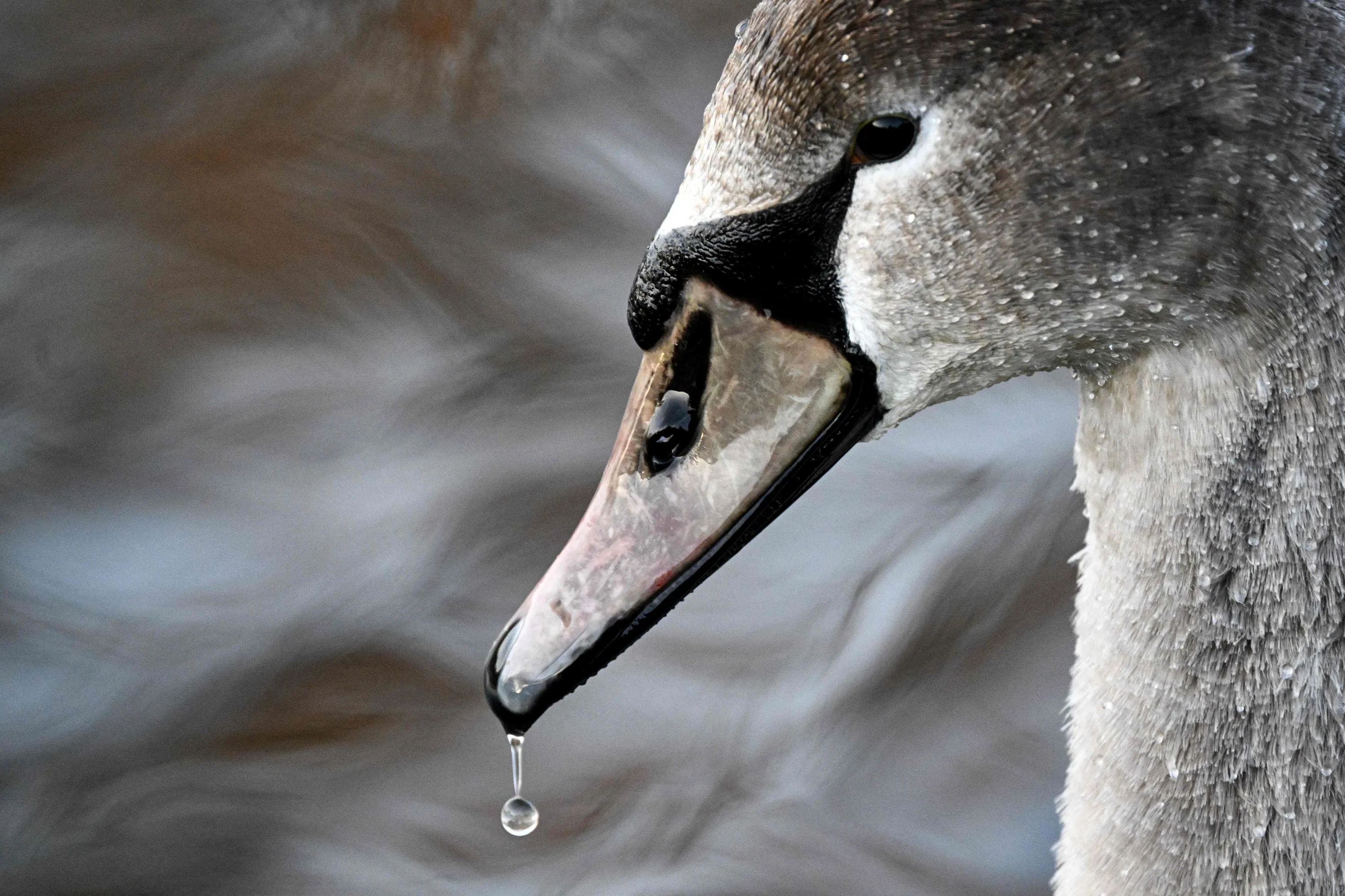 A drop falls from the swan's beak in a pond in Frankfurt am Main, western Germany, on November 22, 2023. (Photo by Kirill Kudryavtsev/AFP Photo)