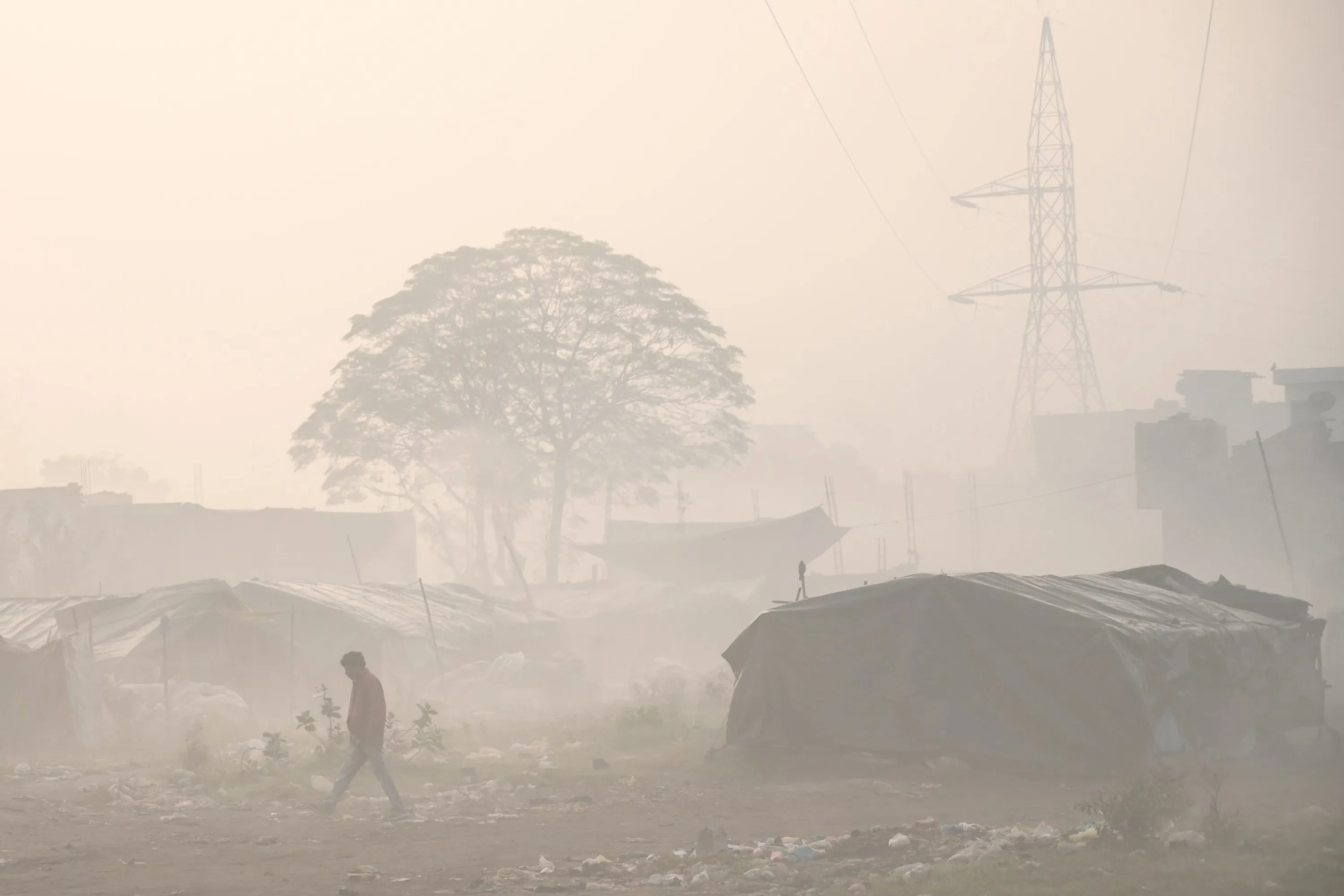 A man walks past litter amid dense smog in the outskirts of Amritsar on November 24, 2023. (Photo by Narinder Nanu/AFP Photo)