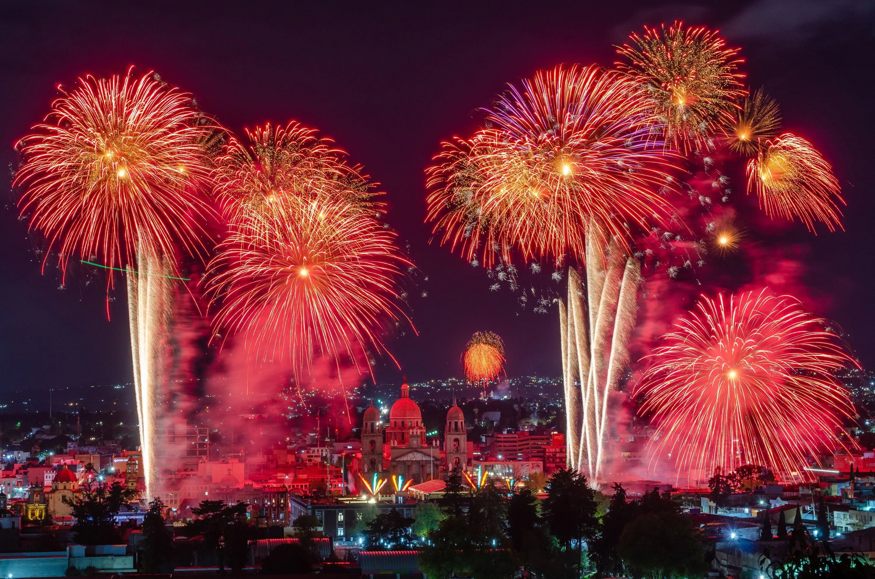 Fireworks for the 212th anniversary of the Independence of Mexico, on 15 September, 2022. The city of Toluca, State of Mexico held a fireworks show in the Plaza de los Martires. (Photo by Arturo Hernandez/NurPhoto via Getty Images)
