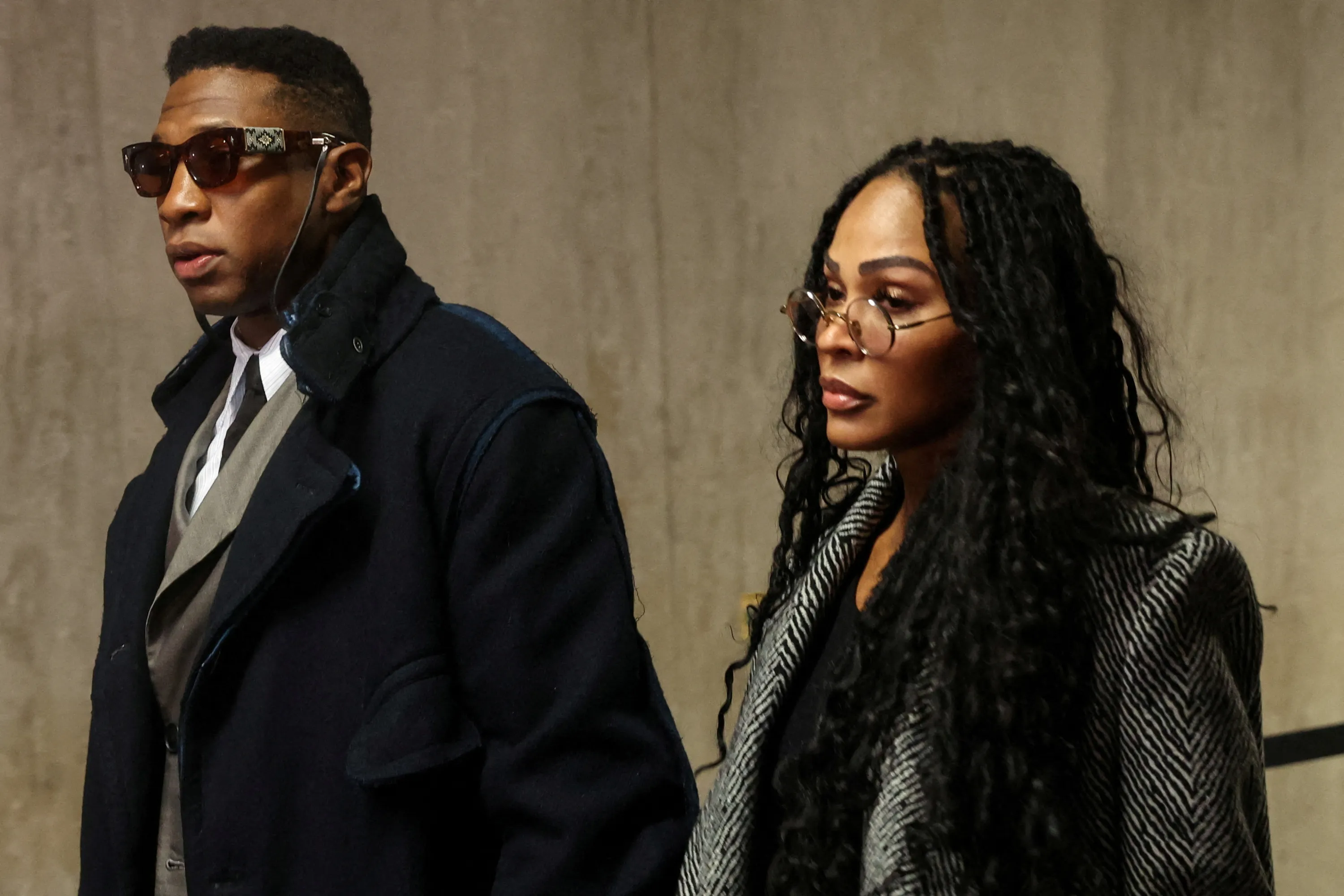 Actor Jonathan Majors arrives with Meagan Good for the jury selection in his assault and harassment case at Manhattan Criminal Court in New York City on November 29, 2023. (Photo by Shannon Stapleton/Reuters)