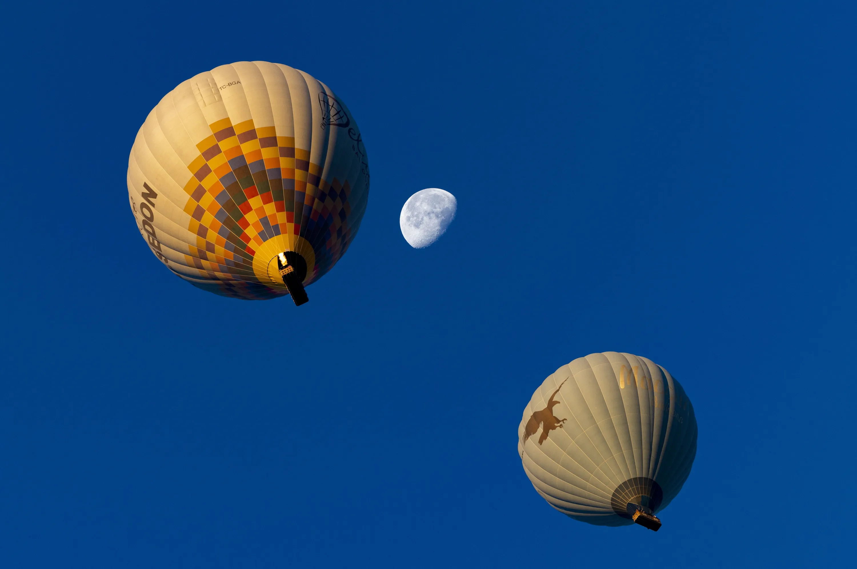 Hot air balloons glide over the sky at sunrise in Goreme district of Nevsehir, Turkiye on September 14, 2022. Hot air balloon tours providing a bird's eye view of the region, are organized every morning for tourists in Cappadocia, which is on the UNESCO World Cultural Heritage List as one of the important tourism centers with its natural, historical and cultural heritage. (Photo by Mustafa Seven/Anadolu Agency via Getty Images)
