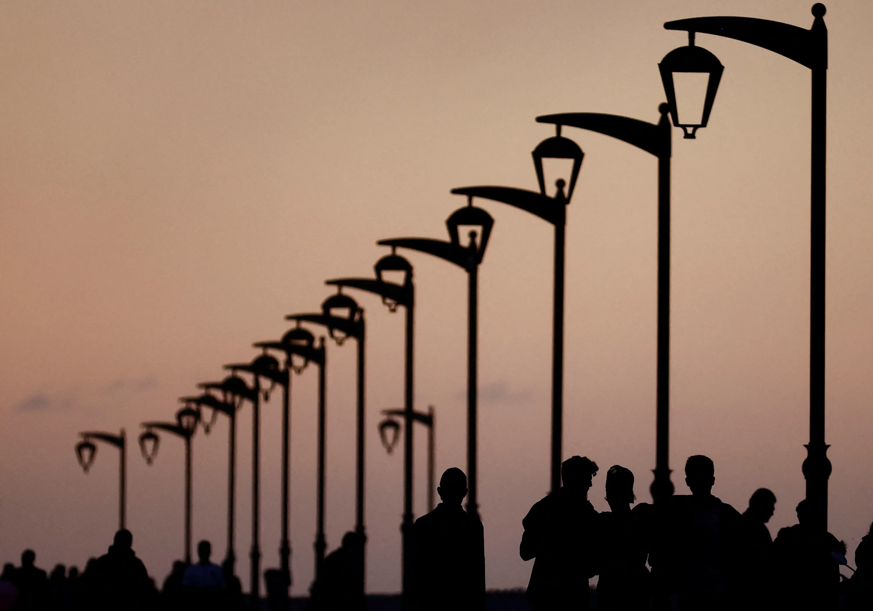 People walk at Beirut's seaside corniche during sunset, Lebanon on November 28, 2023. (Photo by Yara Nardi/Reuters)
