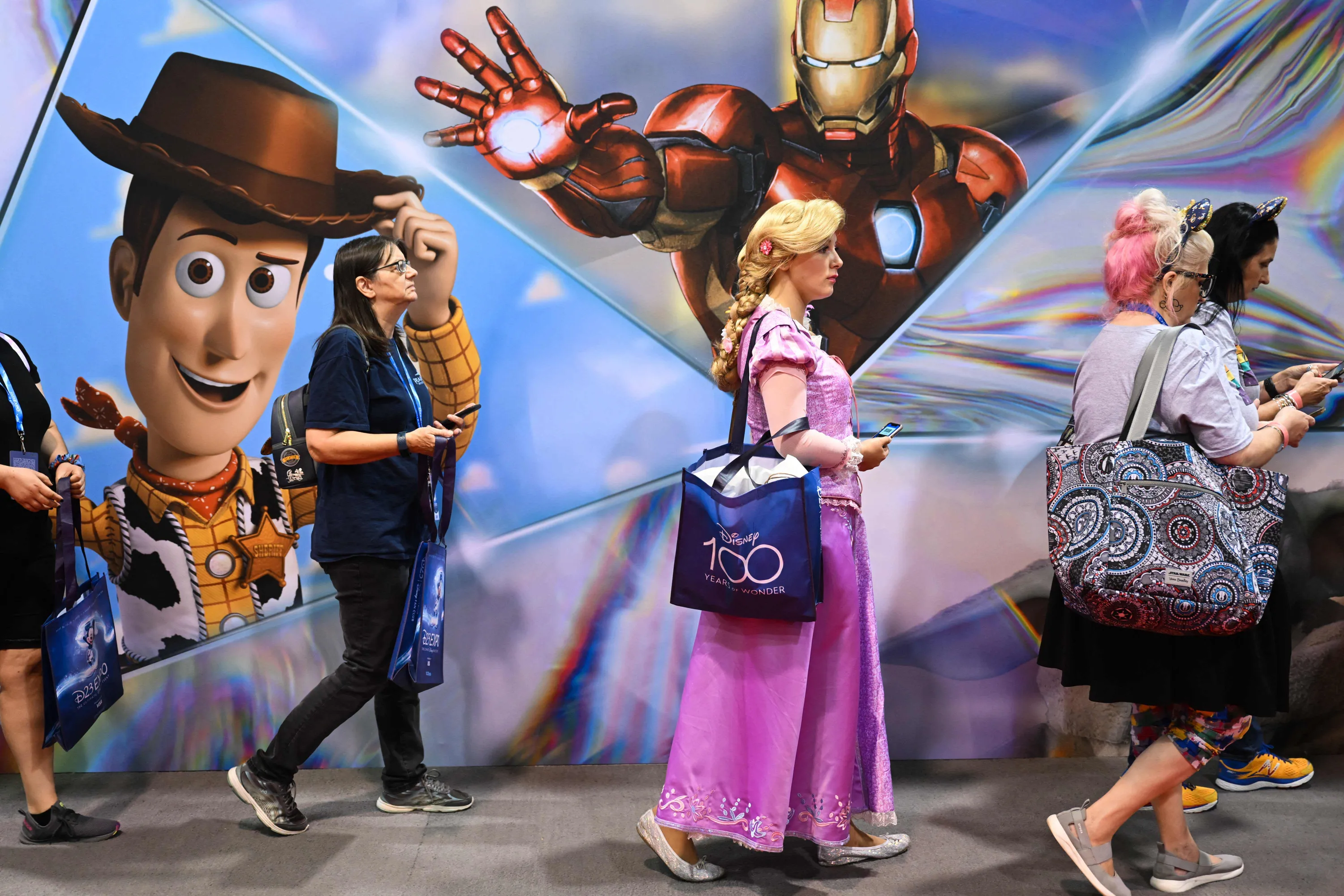 Fans wait in line to visit the D23 Expo Marketplace to buy merchandise during the Walt Disney D23 Expo in Anaheim, California on September 9, 2022 (Photo by Patrick T. Fallon/AFP Photo)