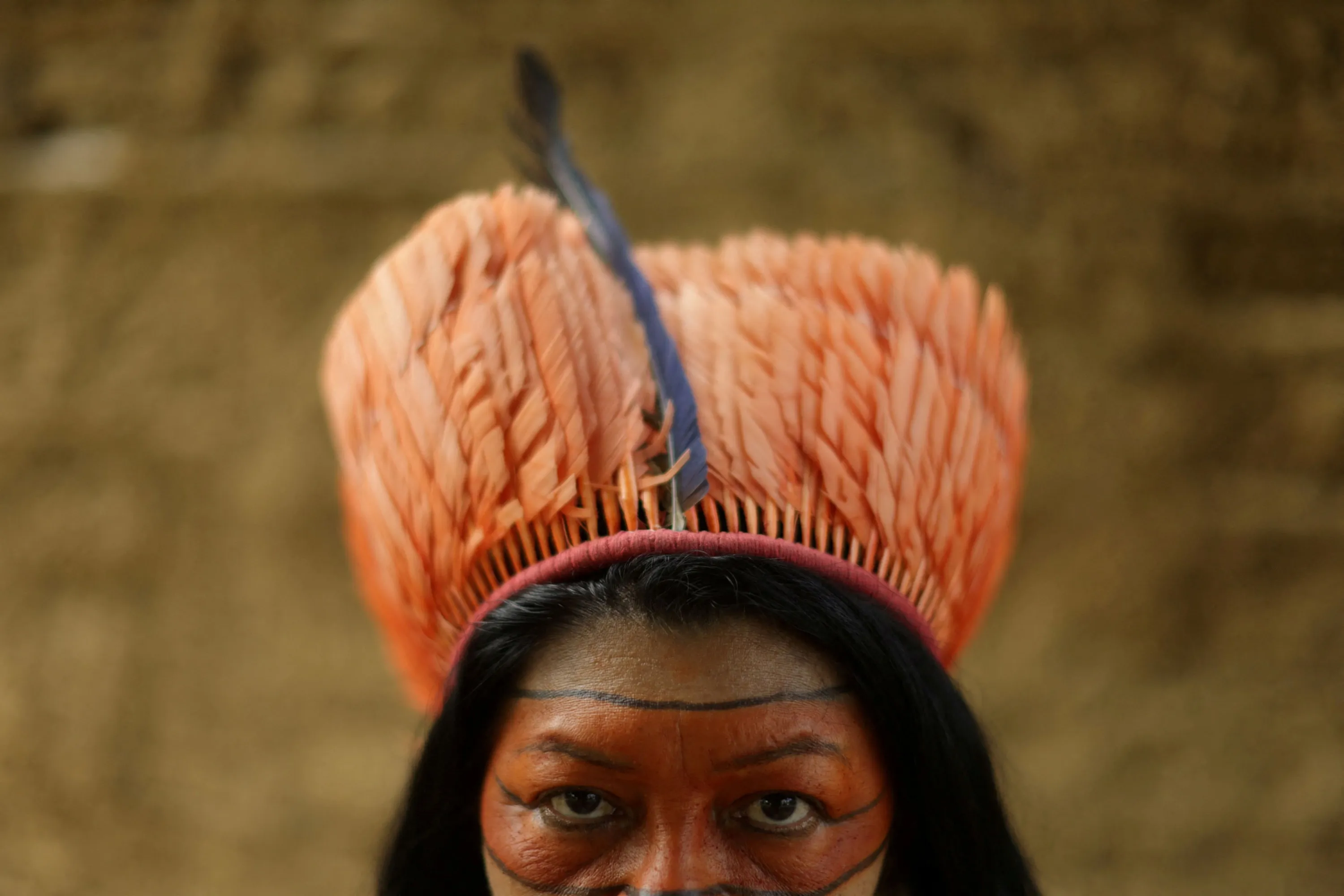Tereza Arapium, from the Arapium indigenous people, candidate for Rio de Janeiro state deputy for the Rede Sustentabilidade party, poses for a photo at the Aldeia Maracana in Rio de Janeiro, Brazil on September 22, 2022. (Photo by Pilar Olivares/Reuters)
