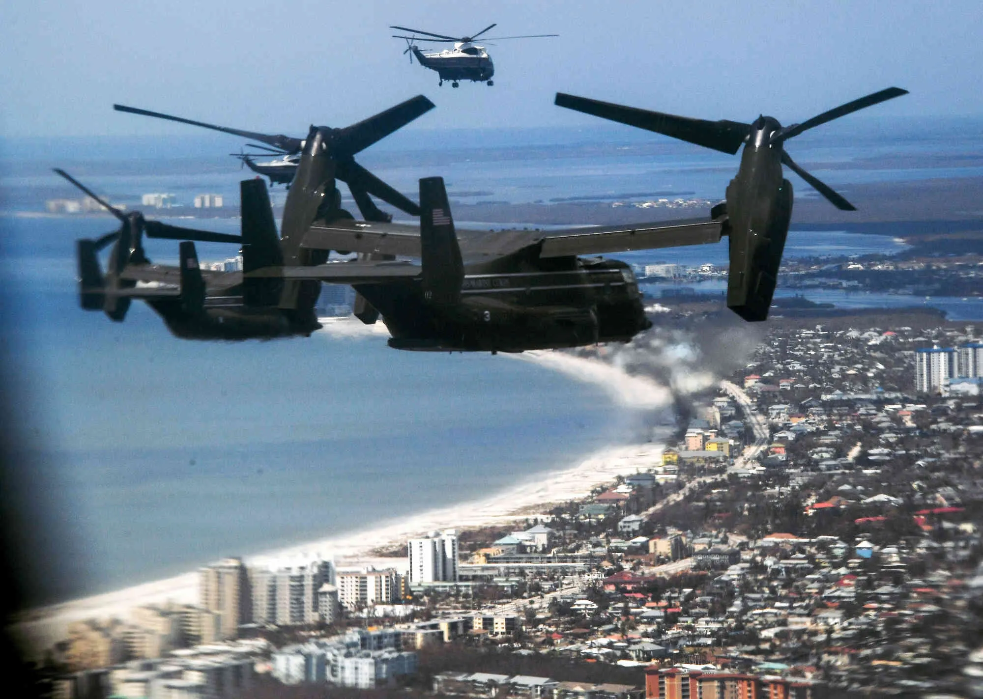 In this image taken through a window, President Joe Biden and first lady Jill Biden take an aerial tour to view the storm-ravaged areas after Hurricane Ian on Marine One, Wednesday, October 5, 2022, in Fort Myers, Fla. (Photo by Olivier Douliery/Pool Photo via AP Photo)