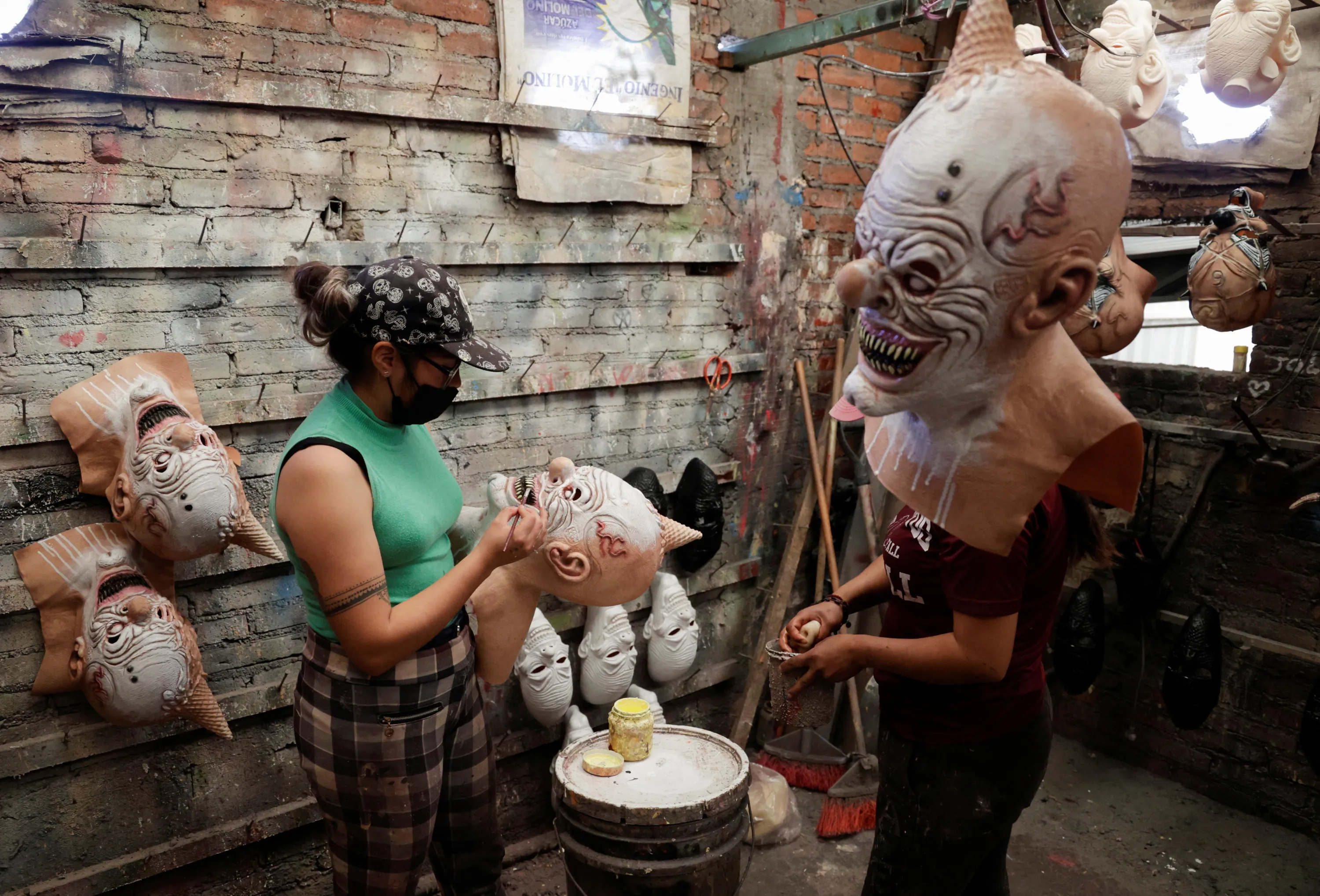 Yareli Perez paints a mask for upcoming Halloween celebrations at a workshop in Yehualtepec, Mexico on October 12, 2022. (Photo by Imelda Medina/Reuters)