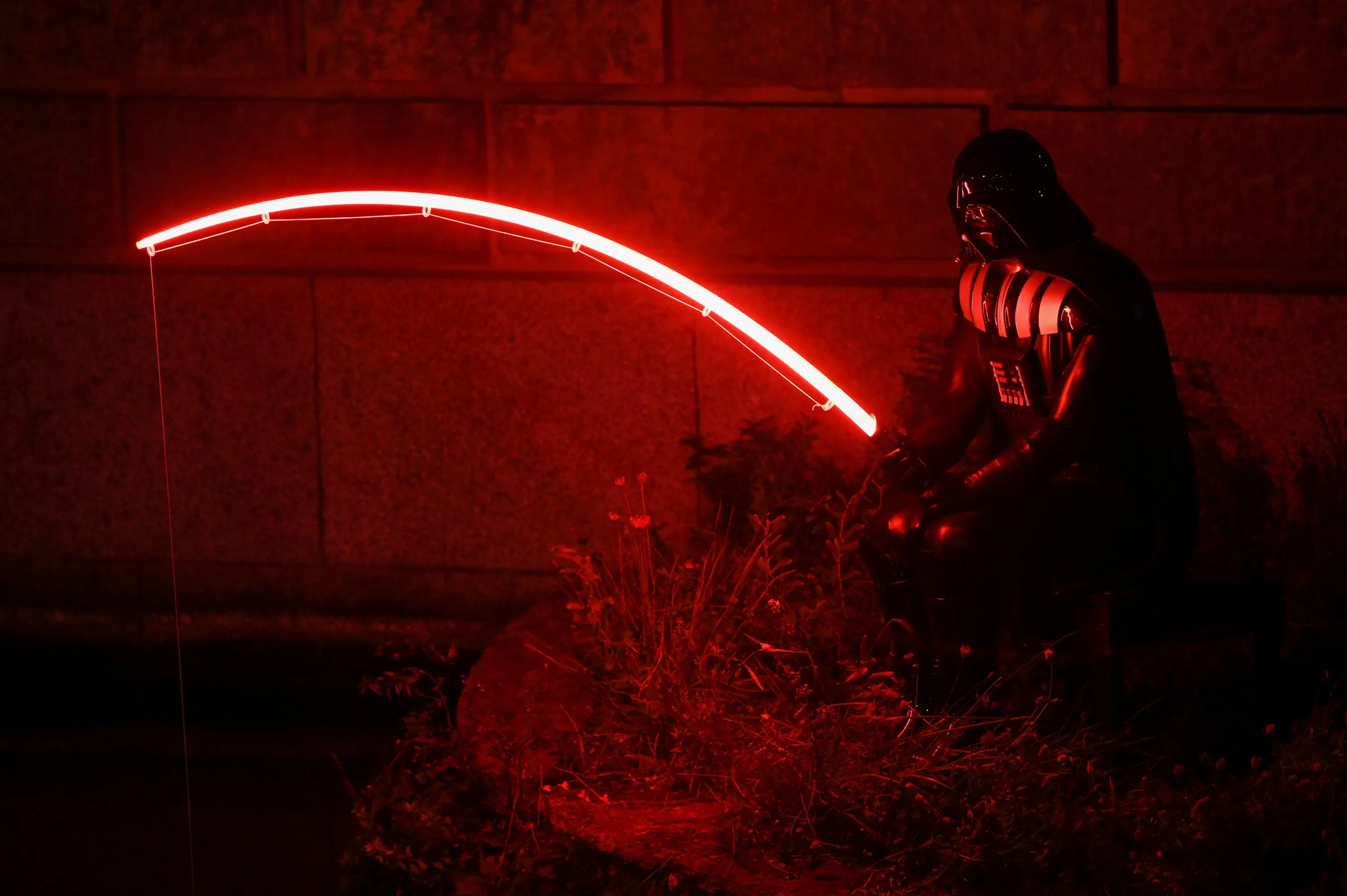 The illuminated artwork “Darth Fisher” by Dutch street artist Frank de Ruwe, also known as Frankey, is pictured during the Festival of Lights show in Berlin, Germany on October 8, 2022. (Photo by Annegret Hilse/Reuters)
