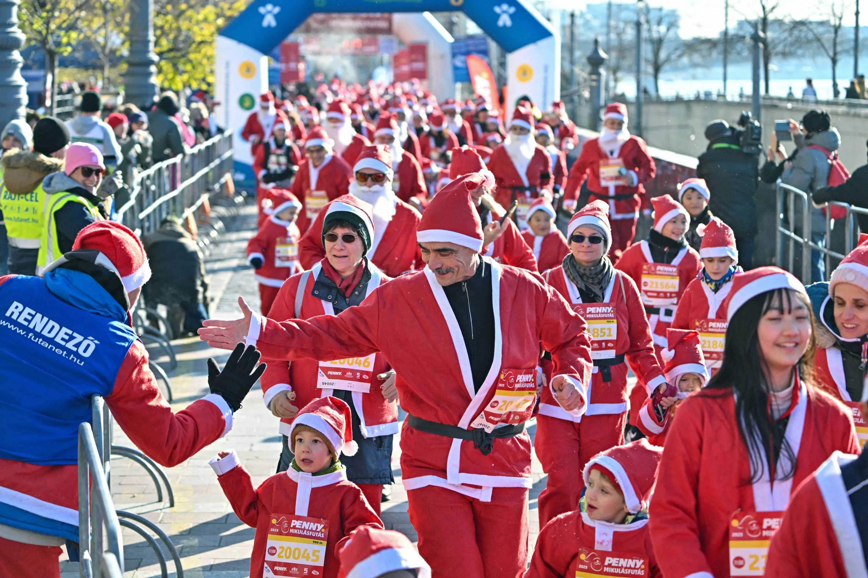 People in Santa Claus costumes take part in the traditional Christmas Santa Claus run on the banks of the River Danube in Budapest, Hungary, on December 3, 2023. The run took place in three categories - families with children, amateurs and professional runners. (Photo by Attila Kisbenedek/AFP Photo)