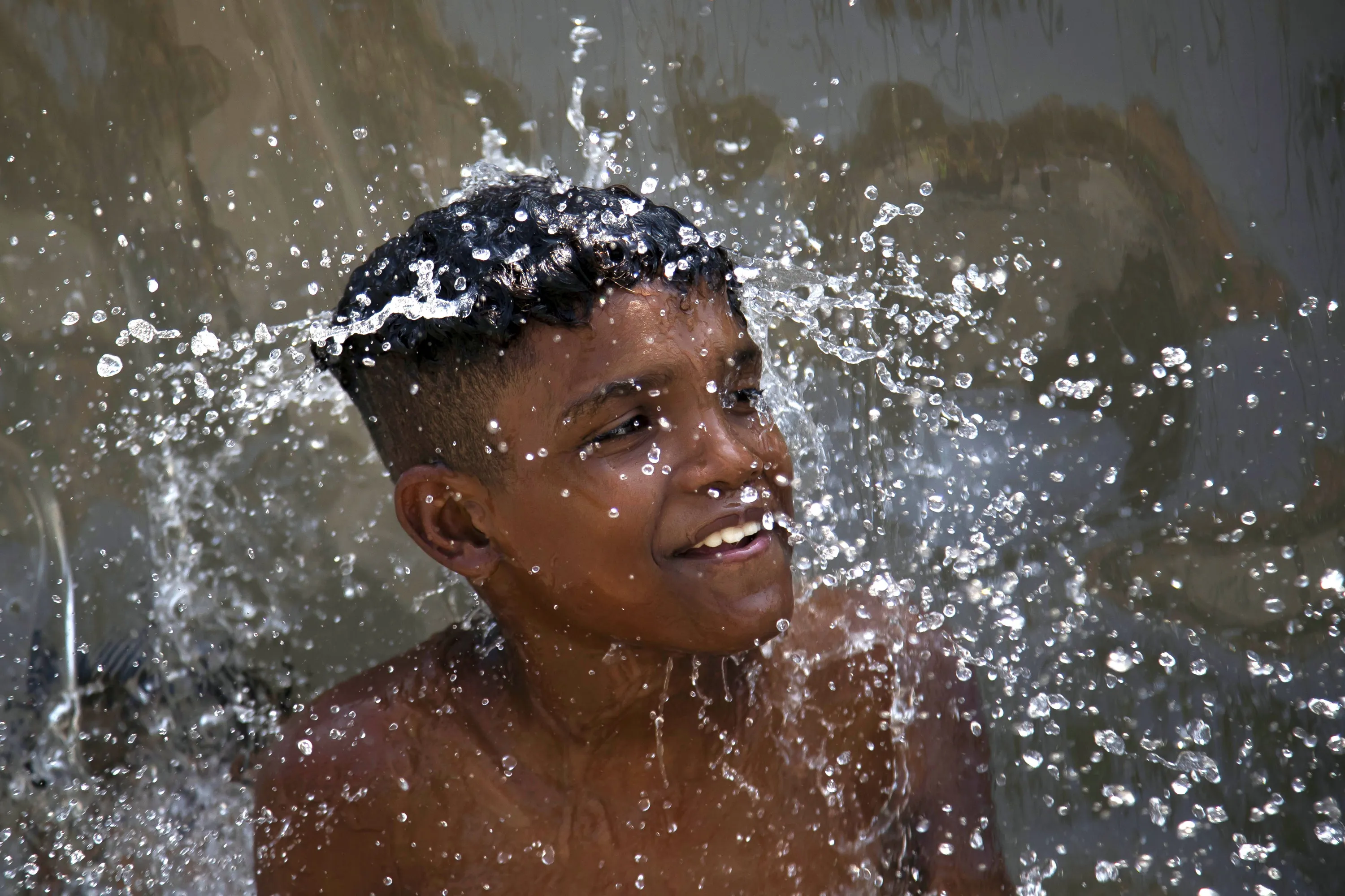 A youth cools off in a water fountain at Madureira Park amid a heat wave in Rio de Janeiro, Brazil, Wednesday, November 15, 2023. (Photo by Bruna Prado/AP Photo)