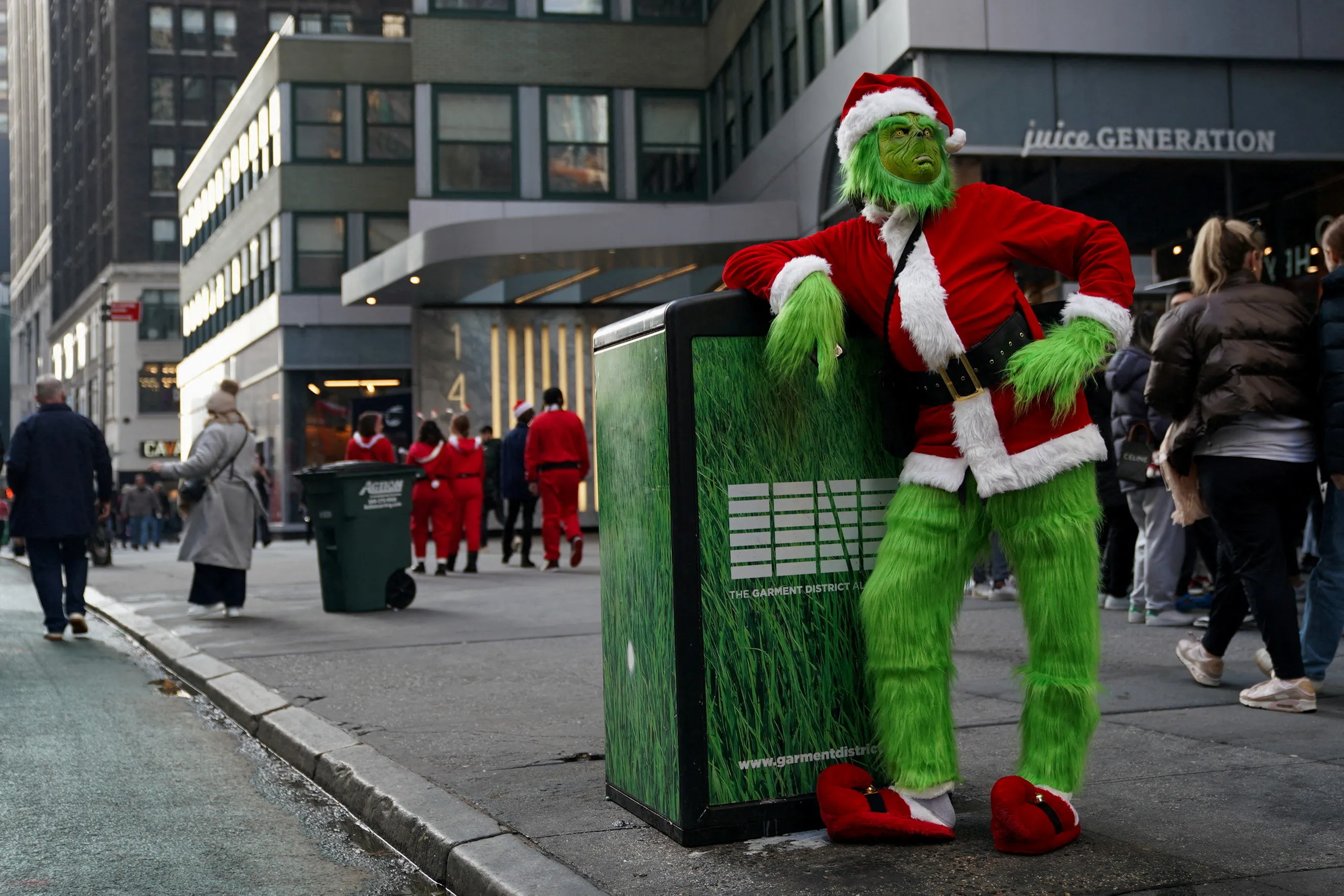 A reveller poses as he takes part in SantaCon in New York City, New York, U.S., December 9, 2023. (Photo by David Dee Delgado/Reuters)