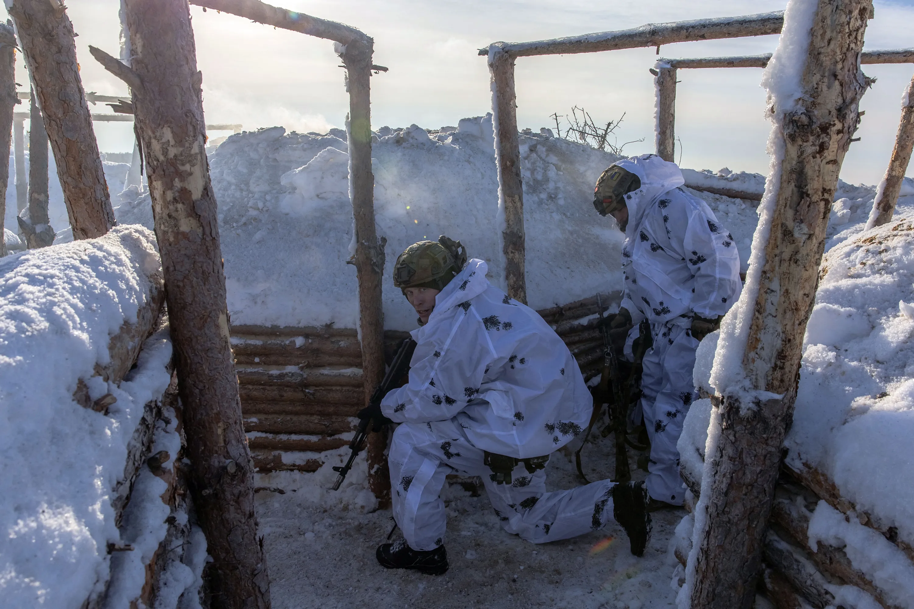 Ukrainian servicemen take part in a military training which focuses on fighting sabotage groups, in the Chernihiv region, on December 5, 2023, amid the Russian invasion of Ukraine. (Photo by Roman Pilipey/AFP Photo)