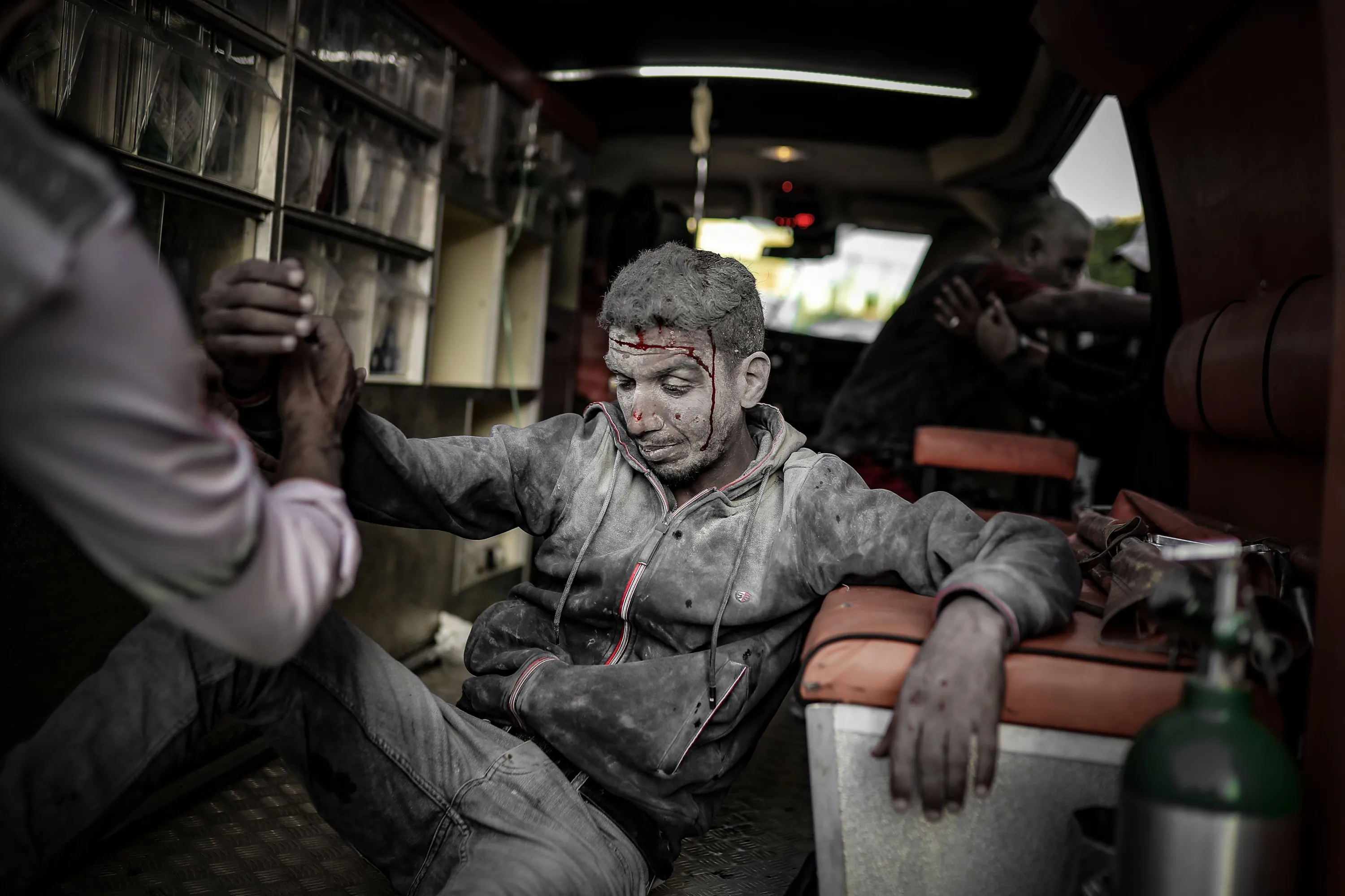 Injured Palestinians, including children, are brought to Nasser Hospital to receive medical treatment following Israeli attacks in Khan Yunis, Gaza on December 08, 2023. (Photo by Belal Khaled/Anadolu via Getty Images)