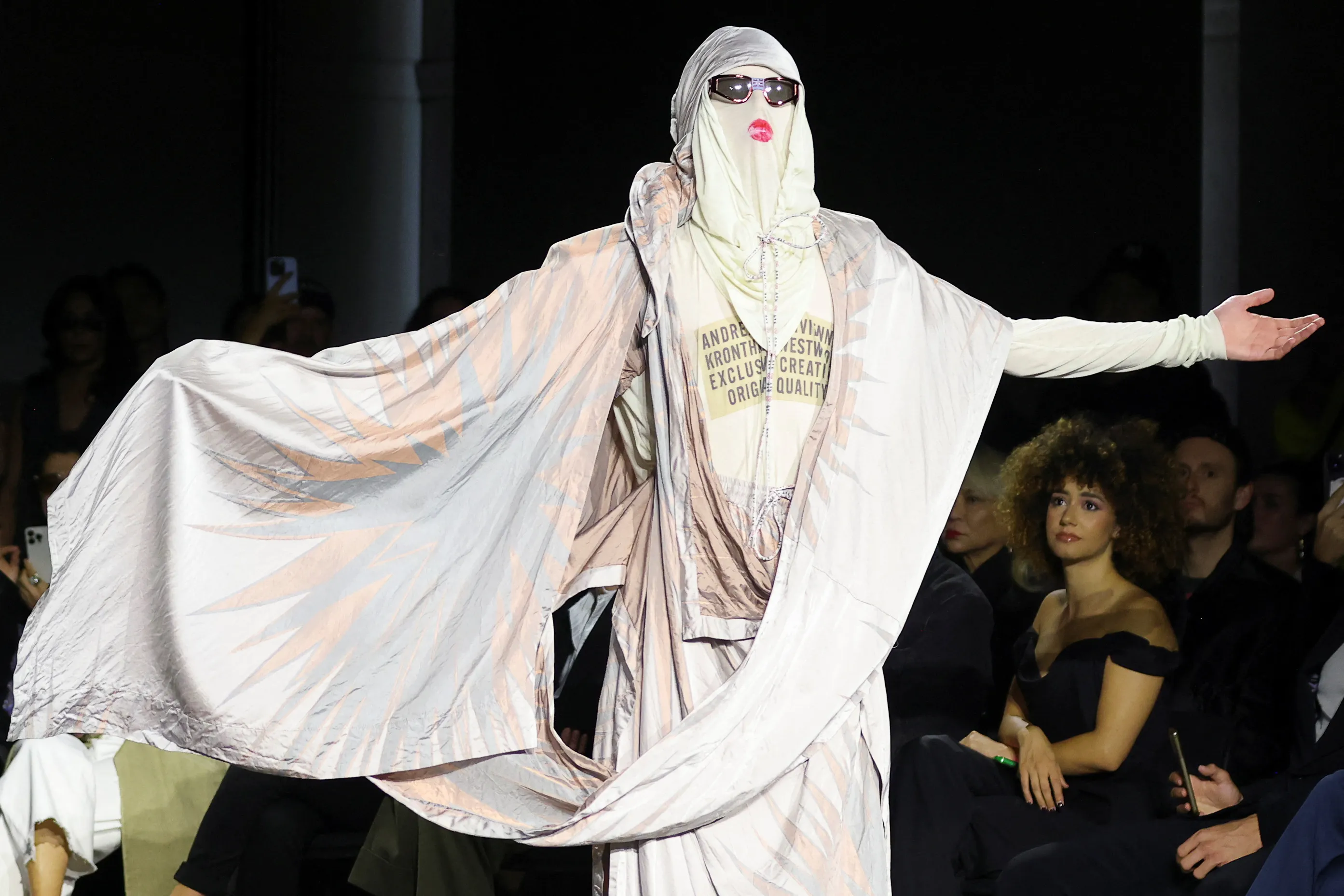 A model presents a creation by designer Andreas Kronthaler as part of his Spring/Summer 2024 Women's ready-to-wear collection show for fashion house Vivienne Westwood, during Paris Fashion Week in Paris, France on September 30, 2023. (Photo by Johanna Geron/Reuters)