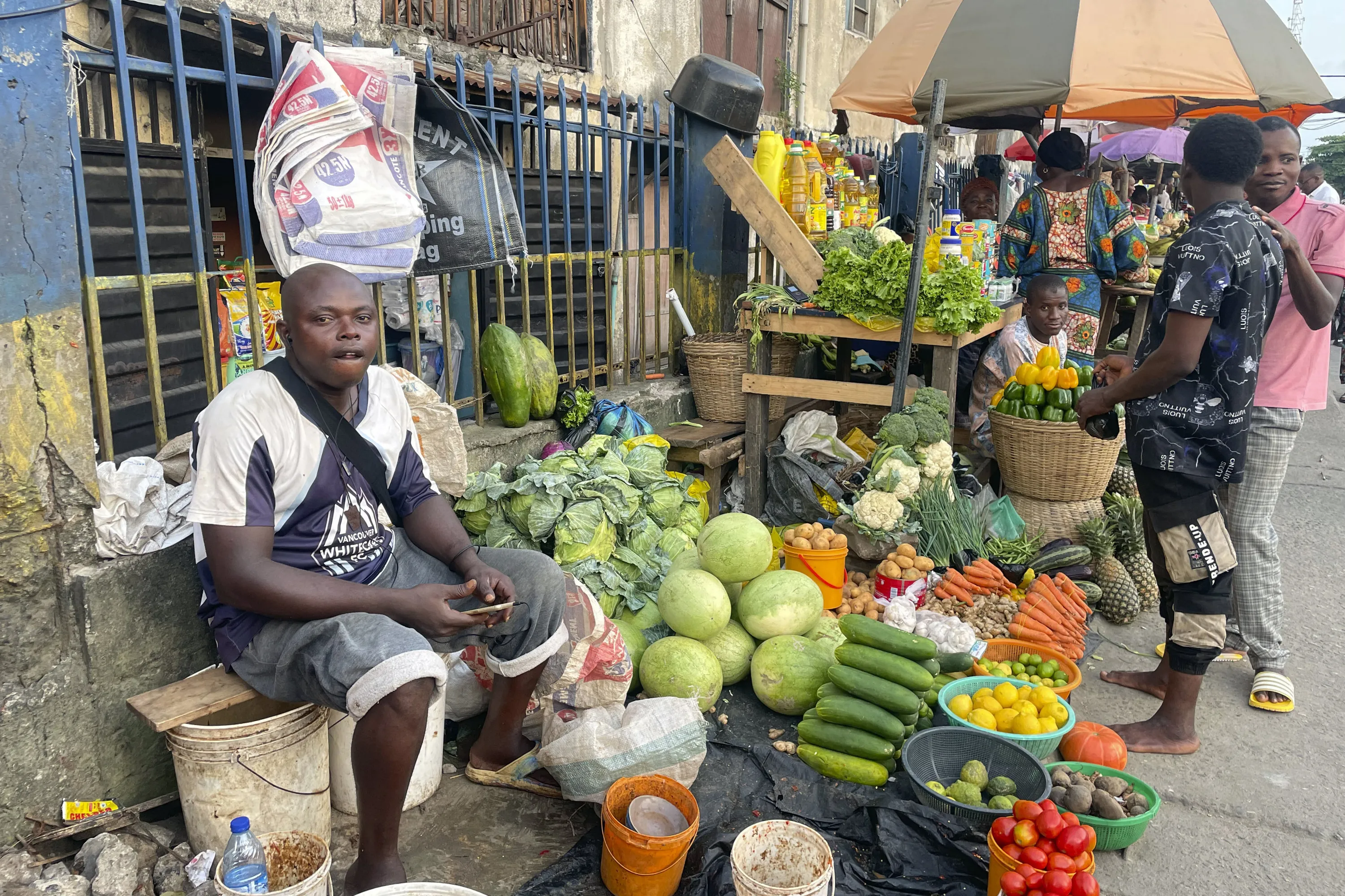 A man sells fruits at a market in Lagos, Nigeria Wednesday , November 29, 2023. Nigeria's leader on Wednesday presented a $34 billion spending plan for 2024 to federal lawmakers with a key focus on stabilizing Africa's largest but ailing economy and fighting the nation's deadly security crisis. (Photo by Sunday Alamba/AP Photo)