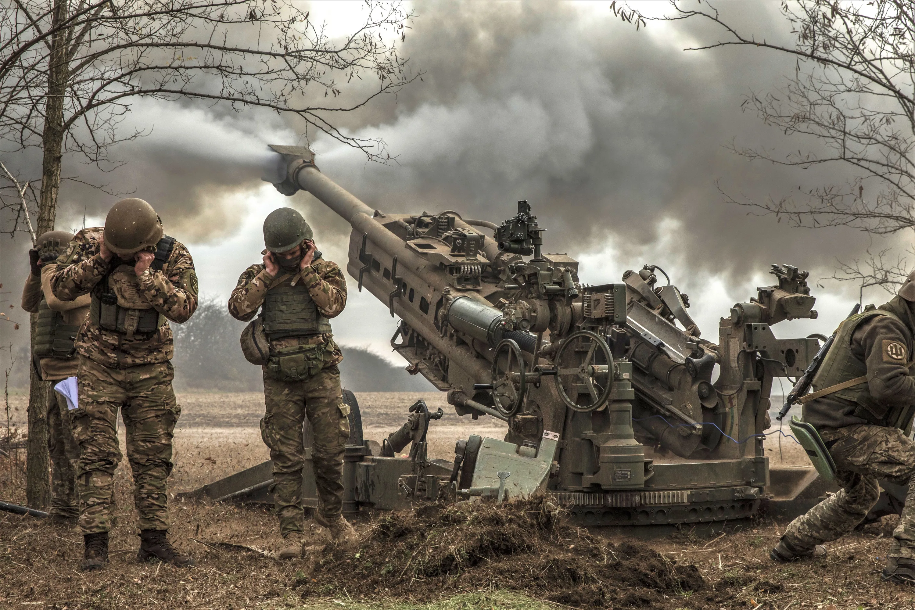 A Ukrainian artillery unit fires an M777 howitzer at Russian armored vehicles near the town of Snihurivka in Ukraine’s southern Mykolaiv region on November 9,2022.Within a few hours, Ukrainian forces took control of the town, a major gateway to the key city of Kherson..(Photo by Heidi Levine for The Washington Post).