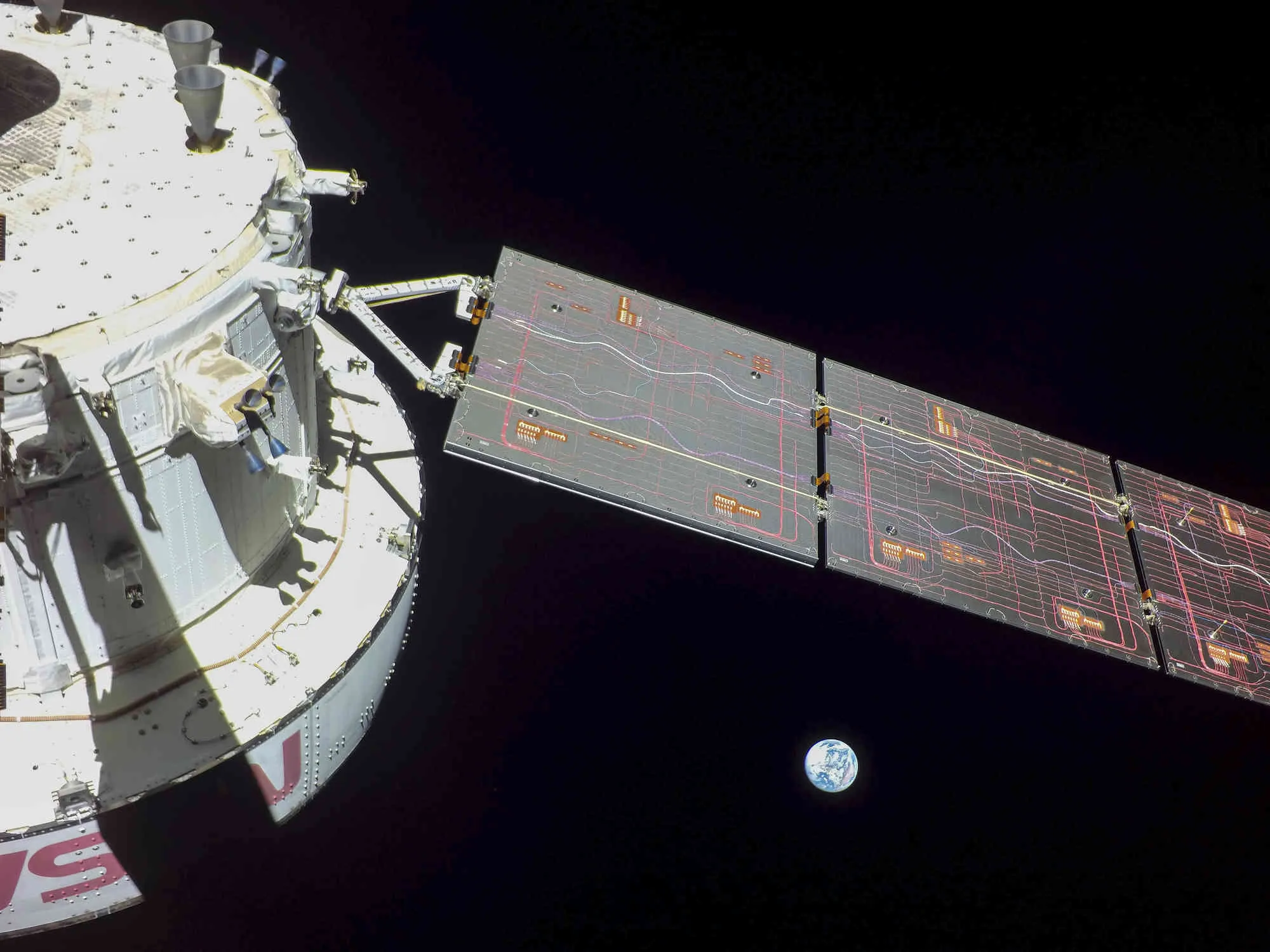 This image provided by NASA shows flight Day 9 imagery that NASA's Orion spacecraft captured looking back at the Earth from a camera mounted on one of its solar arrays. NASA's Orion capsule is now circling the moon in an orbit stretching tens of thousands of miles. The capsule and its three test dummies entered the far-flung orbit Friday, November 25, 2022, more than a week after launching on the test flight. (Photo by NASA via AP Photo)