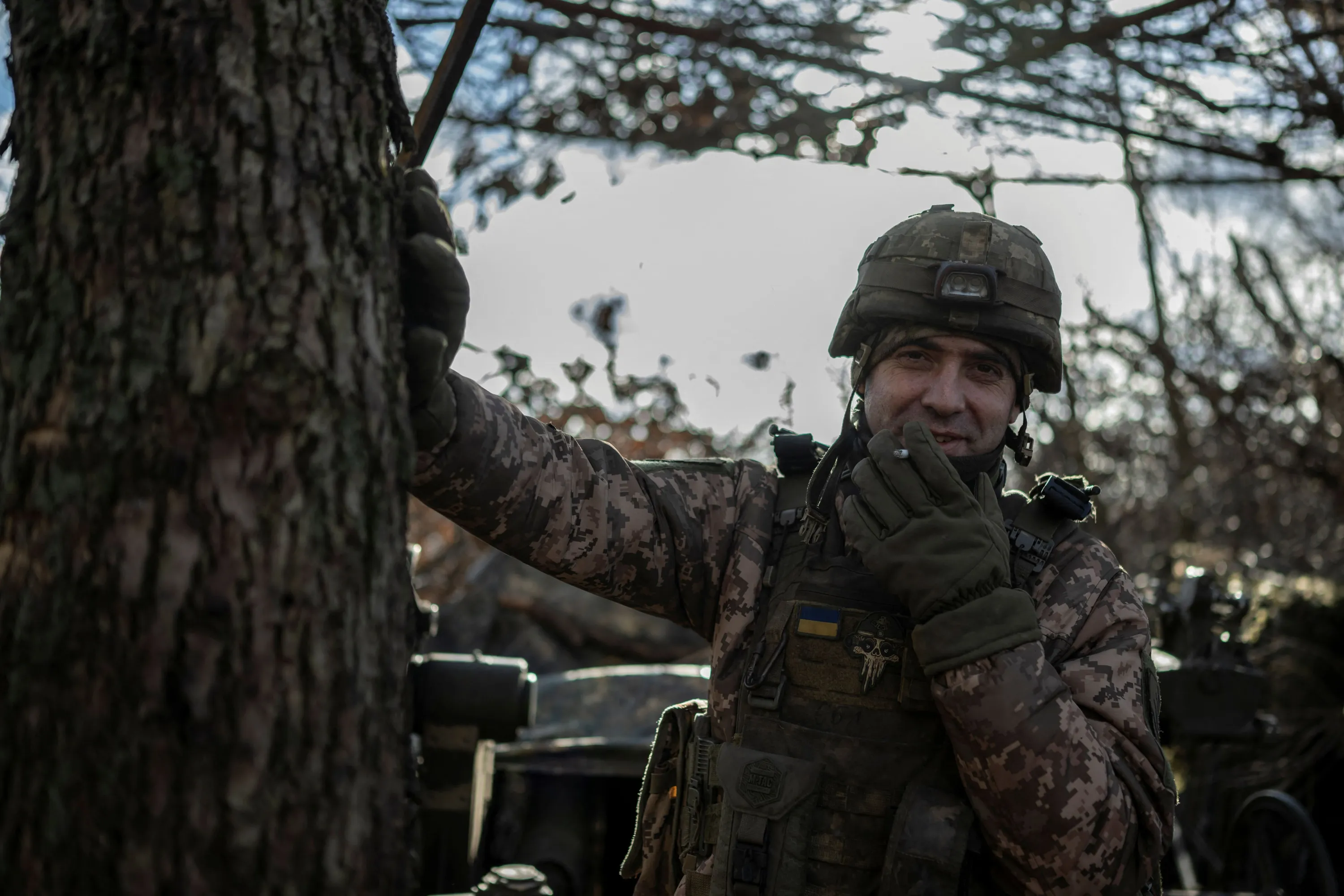 A Ukrainian serviceman of the 55th Separate Artillery Brigade smokes at a position near the front line town of Marinka, amid Russia's attack on Ukraine, in Donetsk region, Ukraine on December 26, 2023. (Photo by Viacheslav Ratynskyi/Reuters)