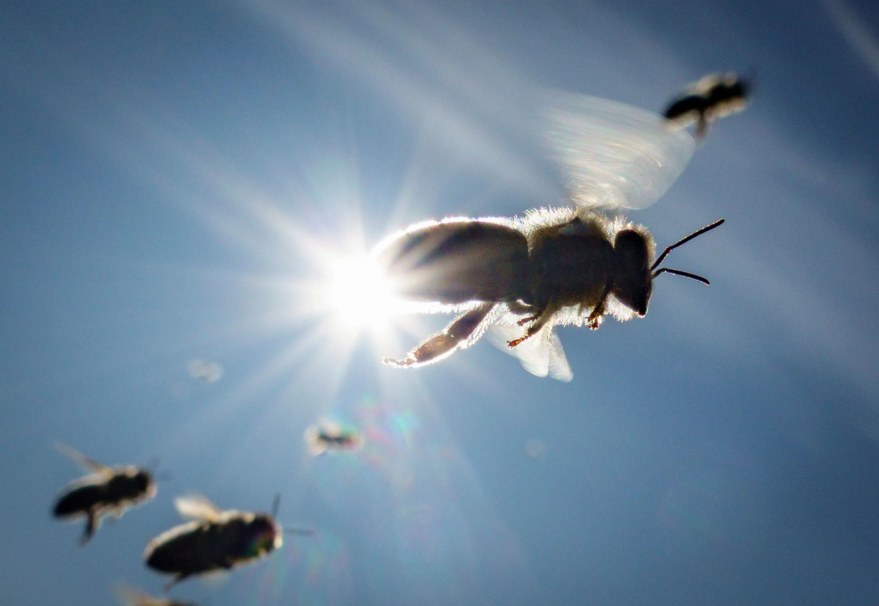 Bees return to their hive in Frankfurt, Germany, on Sunday, October 1, 2023. (Photo by Frank Rumpenhorst/picture-alliance/dpa via AP Photo)