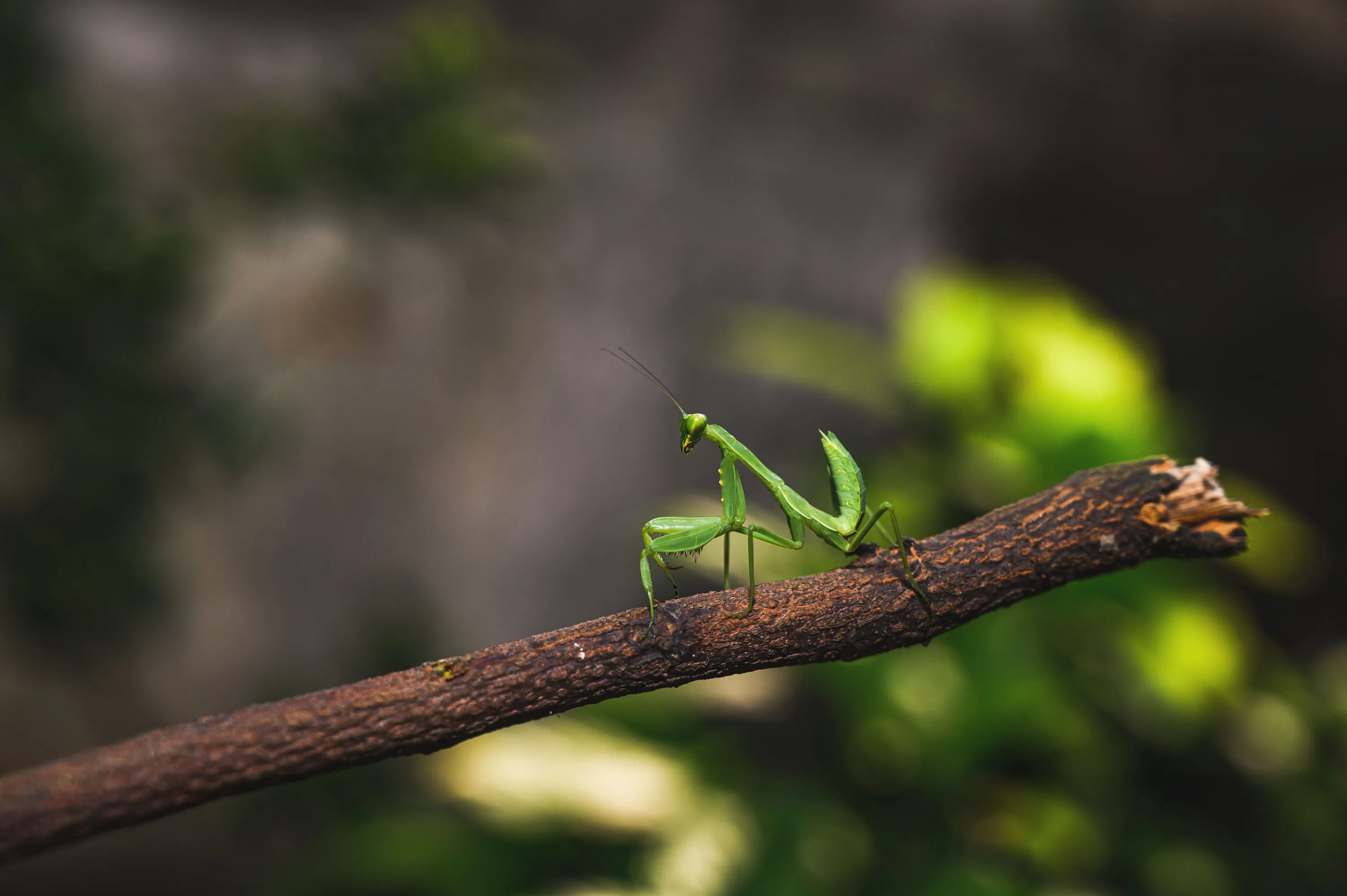 A green garden mantis at Tehatta, West Bengal, India on October 15, 2023. The praying mantis are predatory insects that gets their name because they have very long folded forelegs held close together, and they are held in a position that reminds people of praying. There are about 1,800 species of praying mantids around the world. Praying mantids are carnivores, eating mainly insects and other small animals. Many gardeners and farmers welcome mantids because the insects they eat are often pests that hurt crops. In addition to insects such as crickets and grasshoppers, mantids eat spiders, frogs, lizards, and even small birds. (Photo by Soumyabrata Roy/NurPhoto/Rex Features/Shutterstock)