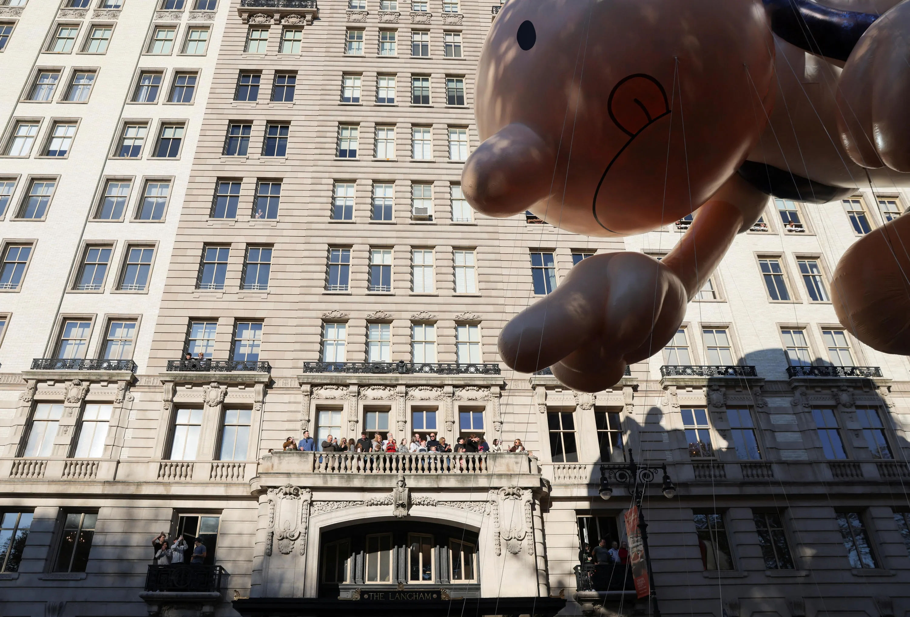 People watch as the Diary of a Wimpy Kid ballon flies during the 96th Macy's Thanksgiving Day Parade in Manhattan, New York City, U.S., November 24, 2022. (Photo by Andrew Kelly/Reuters)