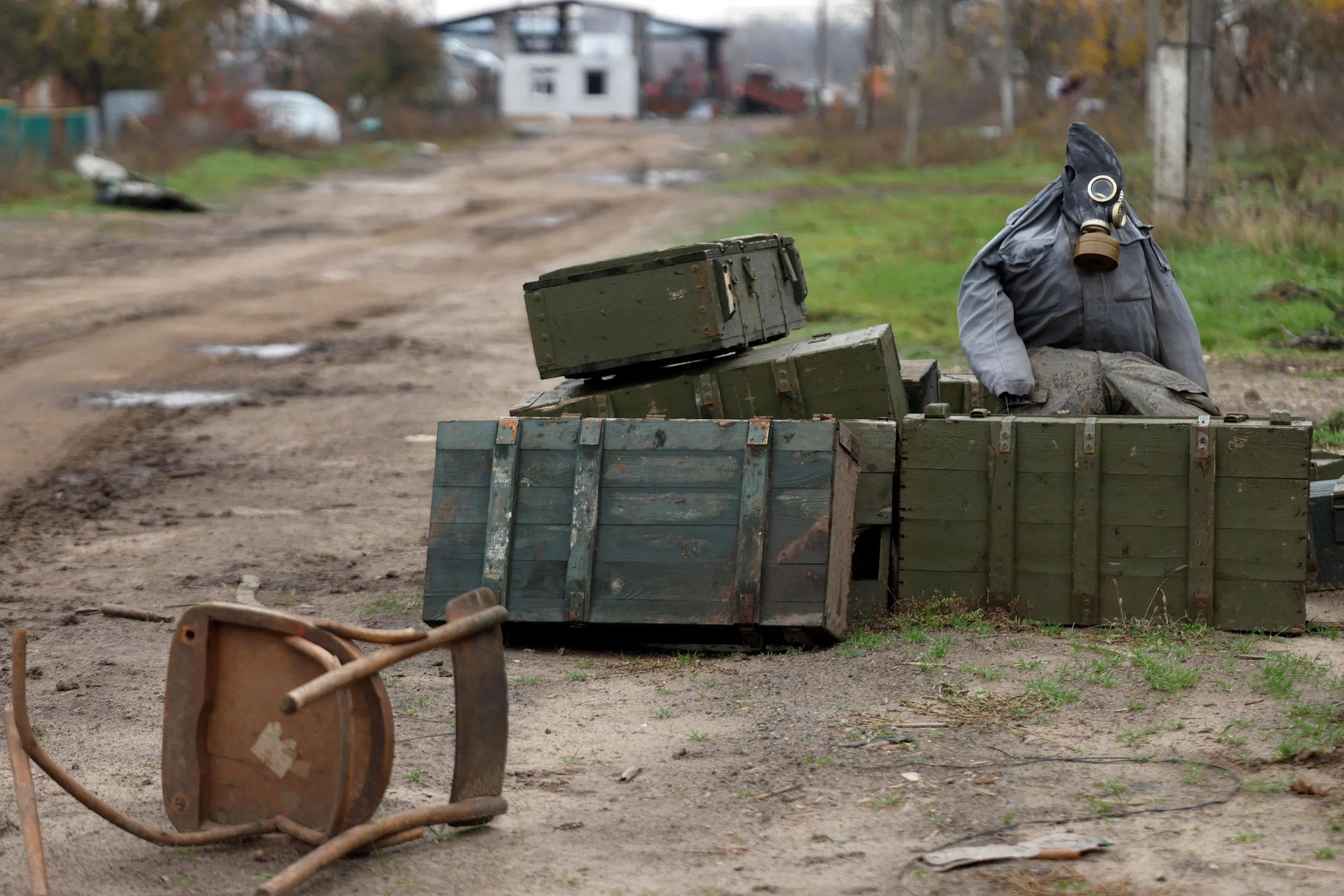 A former Russian checkpoint remains in a street in the village of Kamyanka, on the outskirts of Izium, Kharkiv region, Ukraine on November 3, 2022. The Hague-based International Commission on Missing Persons, an intergovernmental organization, estimates that more than 15,000 people have gone missing across Ukraine during the war, including detainees, those separated from their loved ones and people killed and buried in makeshift graves. (Photo by Clodagh Kilcoyne/Reuters)
