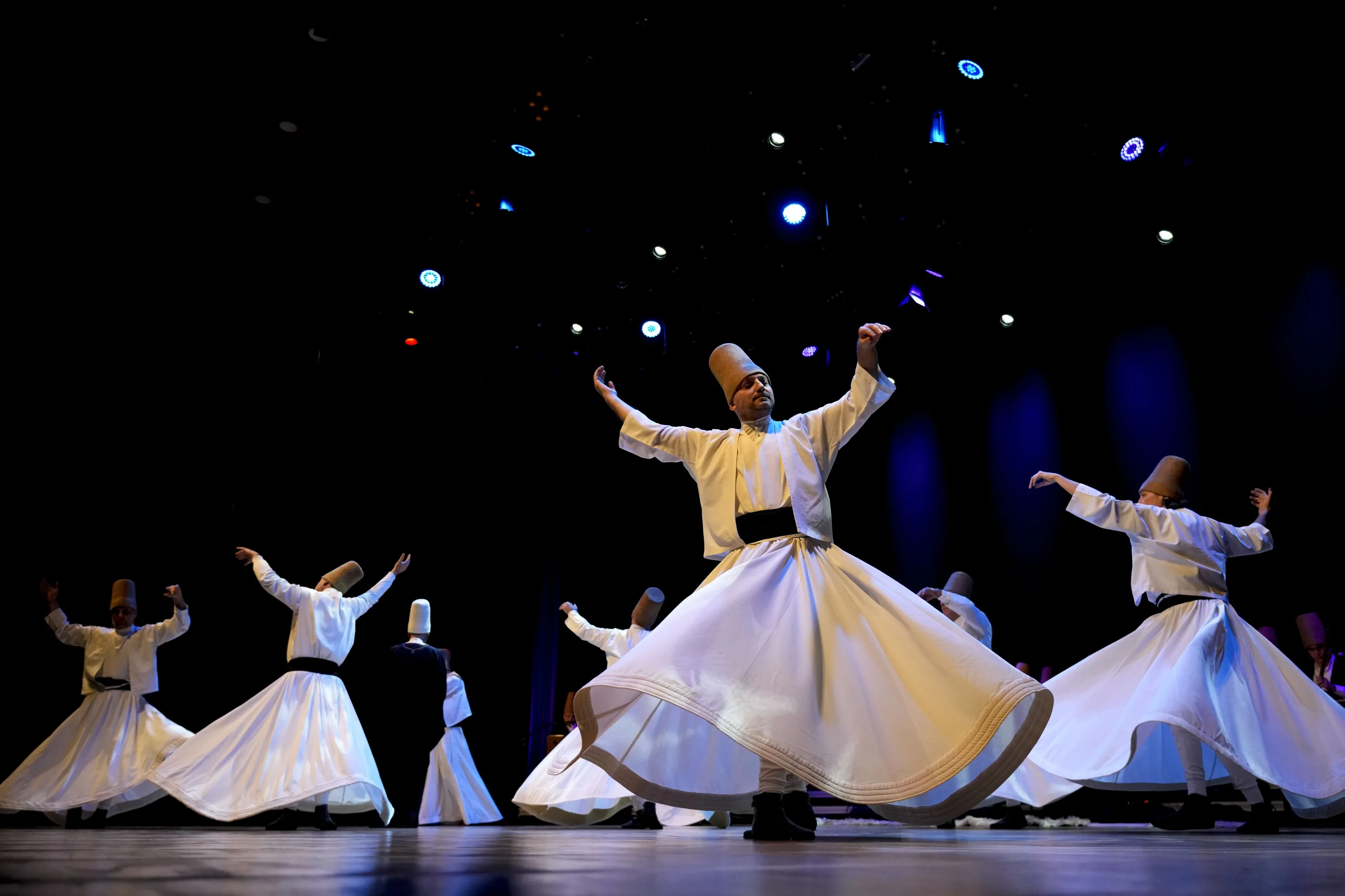 Whirling dervishes of the Mevlevi order perform during a Sheb-i Arus ceremony in Istanbul, Turkey, Sunday, December 17, 2023. (Photo by Emrah Gurel/AP Photo)