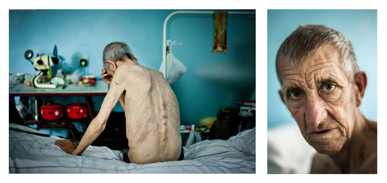“Michael, 63 years old. Diagnosis: Multi-drug-resistant tuberculosis (MDR TB), in Kherson TB hospital, on July 19, 2011. He worked as a bricklayer on a construction site. After stomach surgery, he went for a check-up, and a doctor found spots on his lungs. After this he was sent immediately to a clinic, where he has been receiving treatment off and on since 1983. In 1995, the World Health Organization declared a tuberculosis epidemic in Ukraine. Over the past 16 years, the situation has deteriorated even further”. (© Maxim Dondyuk, Ukraine/2013 Sony World Photography Awards)