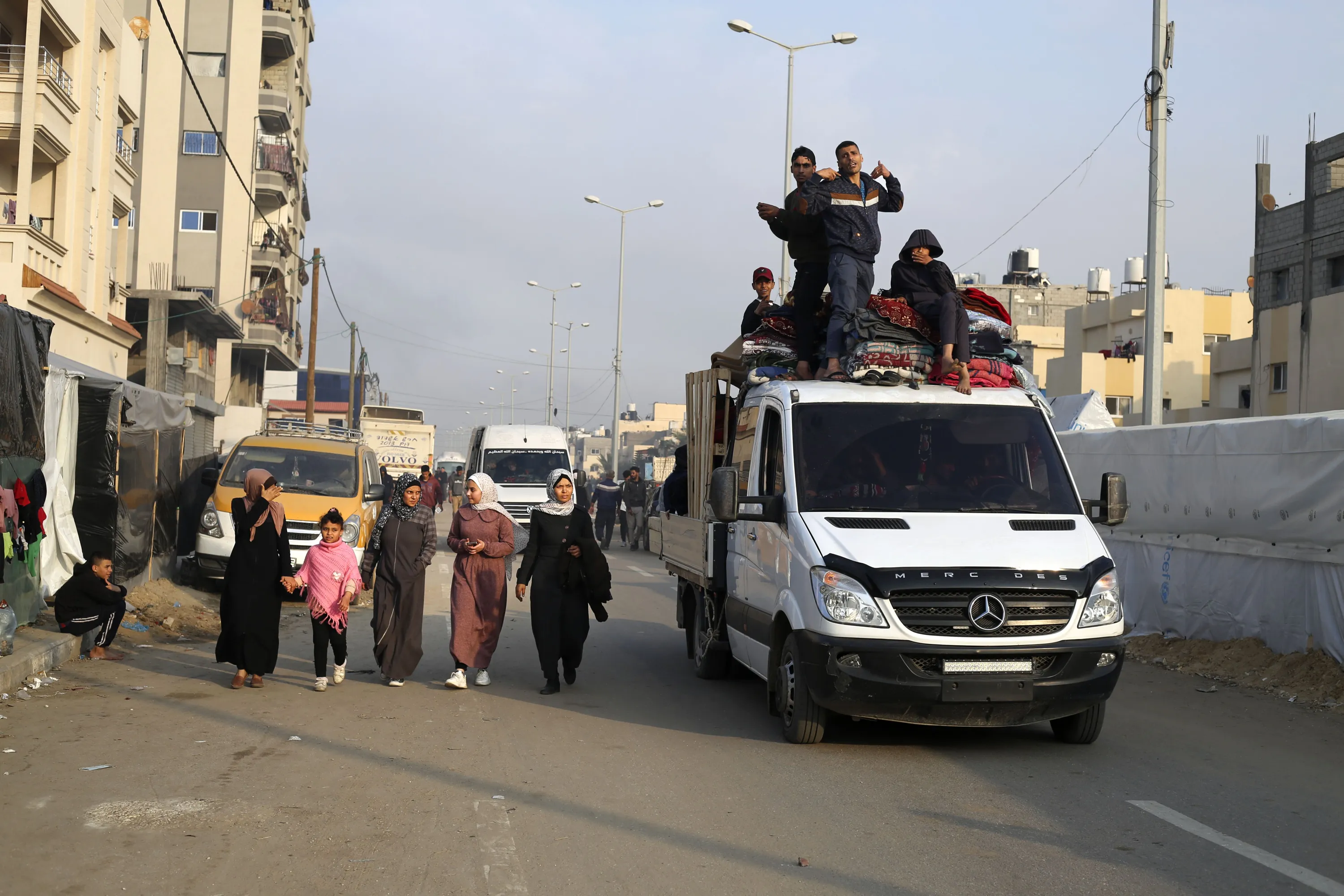 Palestinians fleeing the Israeli bombardment of the Gaza Strip arrive in Rafah Wednesday, December 27, 2023. (Photo by Hatem Ali/AP Photo)