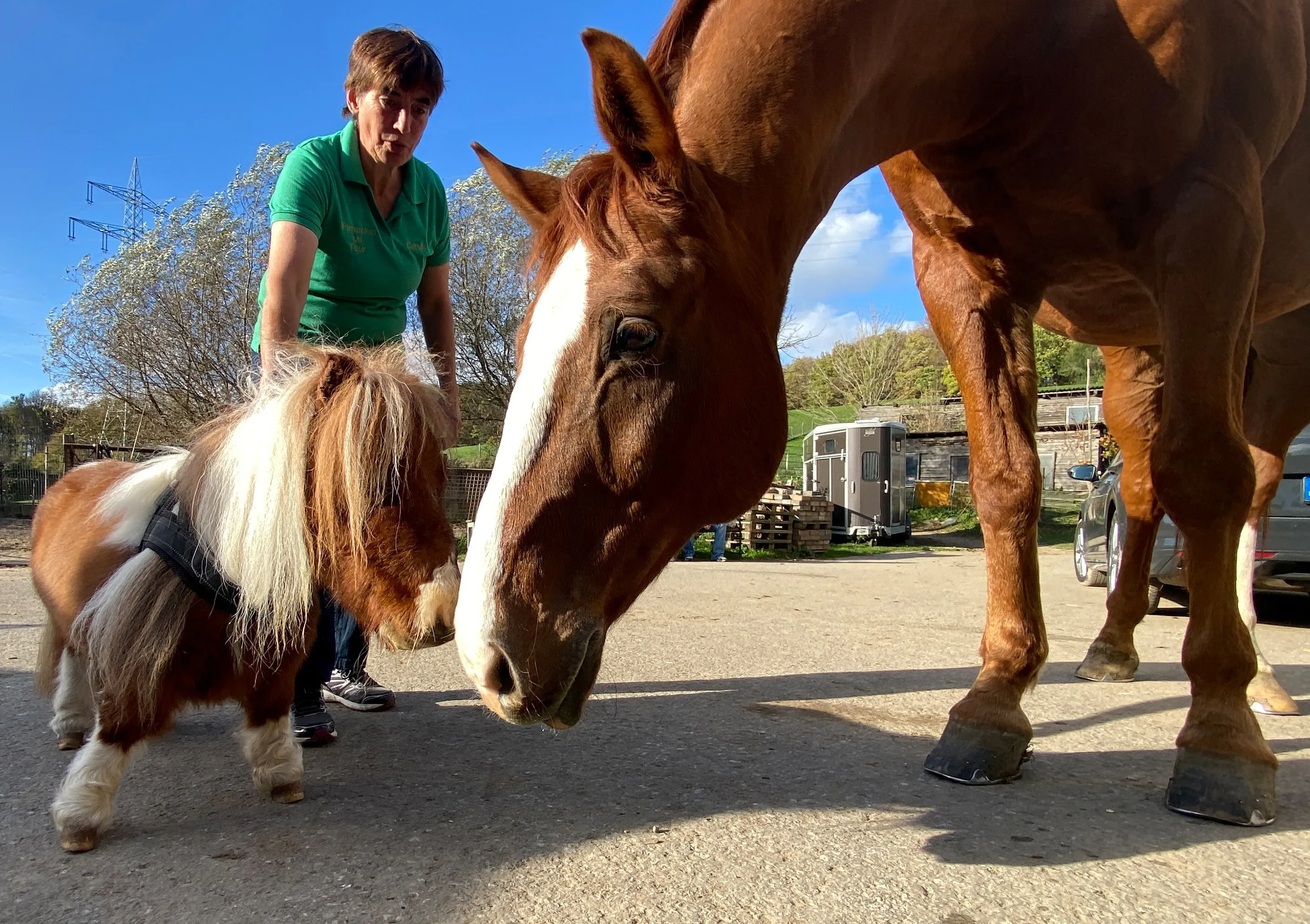 Carola Weidemann poses with small Shetland pony Pumuckel at her farm in Breckerfeld, Germany on November 2, 2022. Due to a congenital short stature, the Shetland pony has a shoulder height of about 50 centimetres and Weidemann plans to register pony Pumuckel next year as smallest pony in the world for the Guinness Book of Records. (Photo by Stephane Nitschke/Reuters)