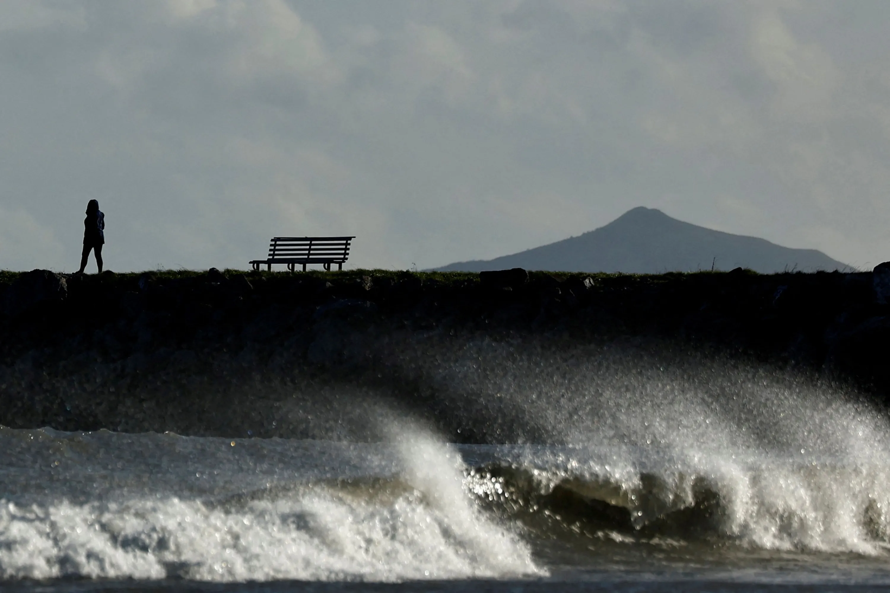 The Sugarloaf mountain is seen while a person walks as Storm Ciaran approaches, in Dublin, Ireland on November 1, 2023. (Photo by Clodagh Kilcoyne/Reuters)