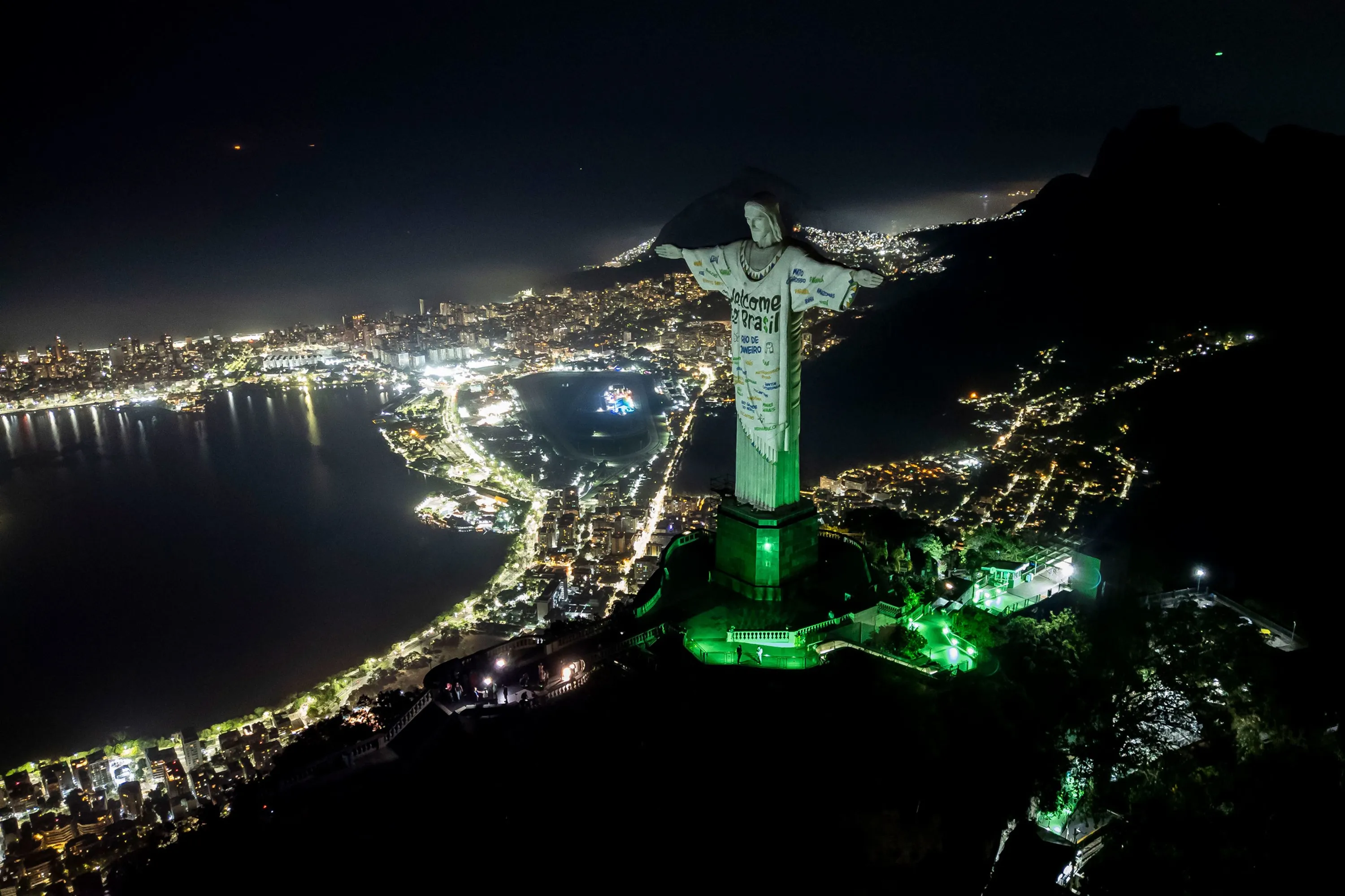 The Christ the Redeemer statue is illuminated with a welcome message for American singer Taylor Swift, in Rio de Janeiro, Brazil, Thursday, November 16, 2023. (Photo by Bruna Prado/AP Photo)