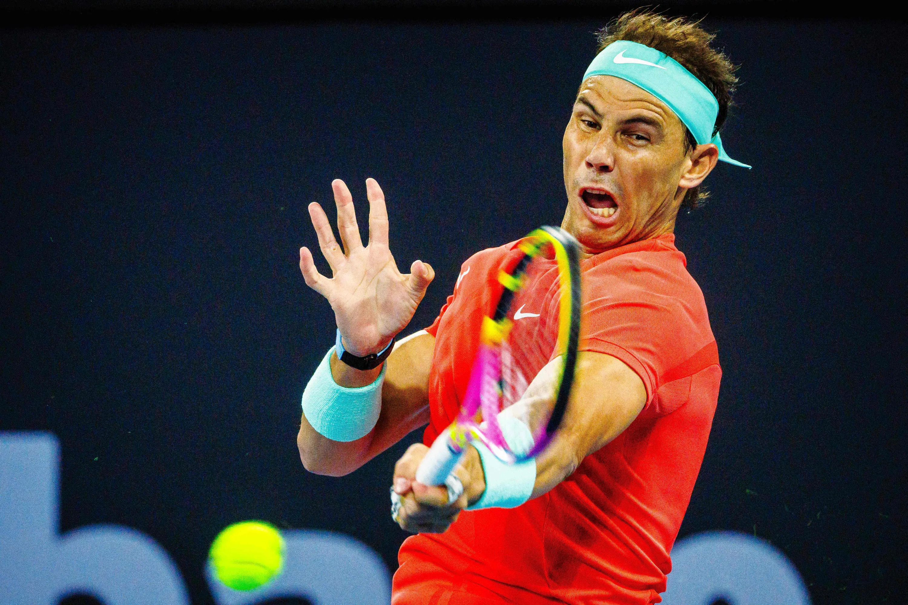 Spain's Rafael Nadal hits a return against Austria's Dominic Thiem during their men's singles match at the Brisbane International tennis tournament in Brisbane on January 2, 2024. (Photo by Patrick Hamilton/AFP Photo)