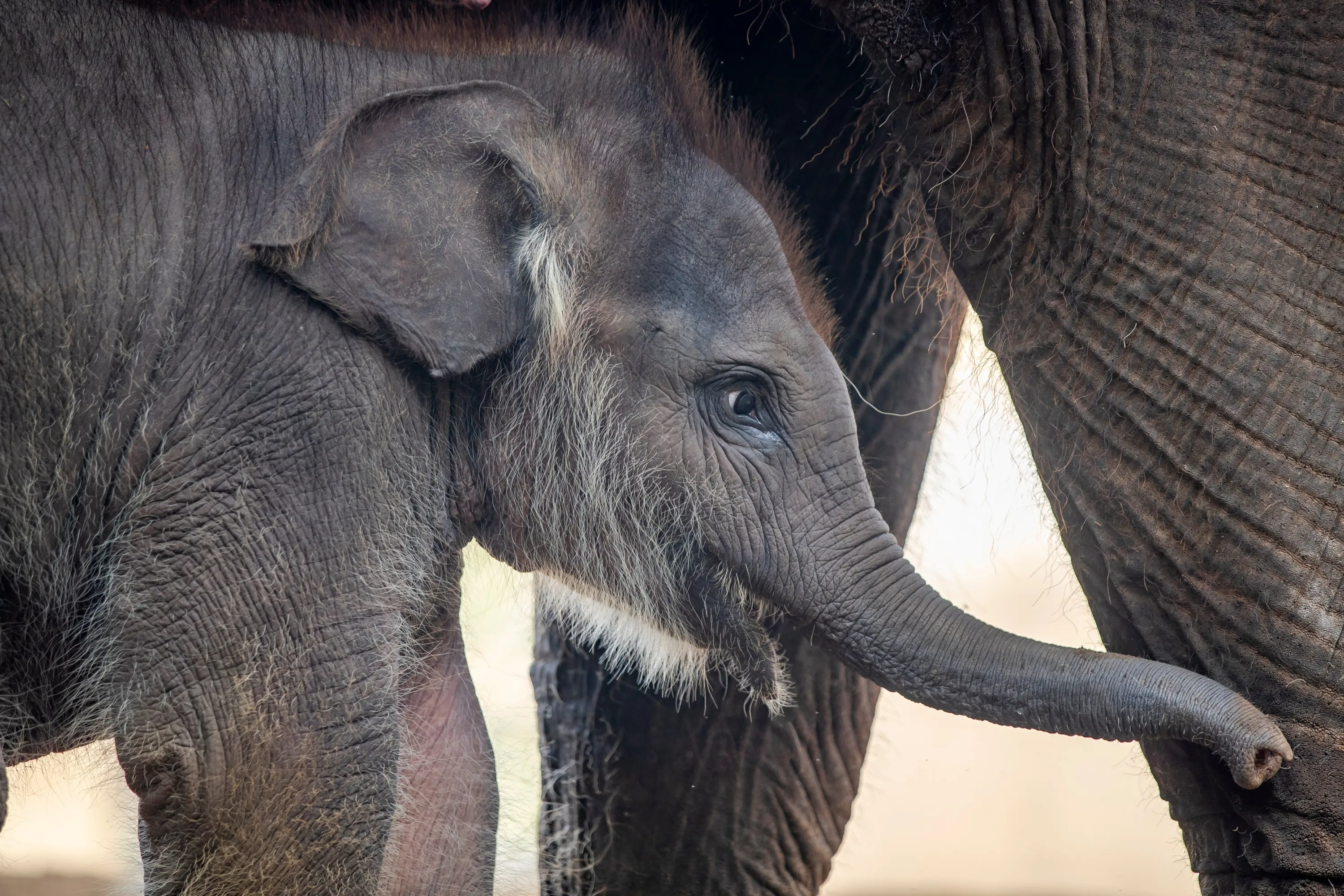 A month-old male Sumatran elephant named “Kama” next to his mother at Bali Zoo in Gianyar, Bali, Indonesia, 22 December 2023. (Photo by Made Nagi/EPA/EFE)
